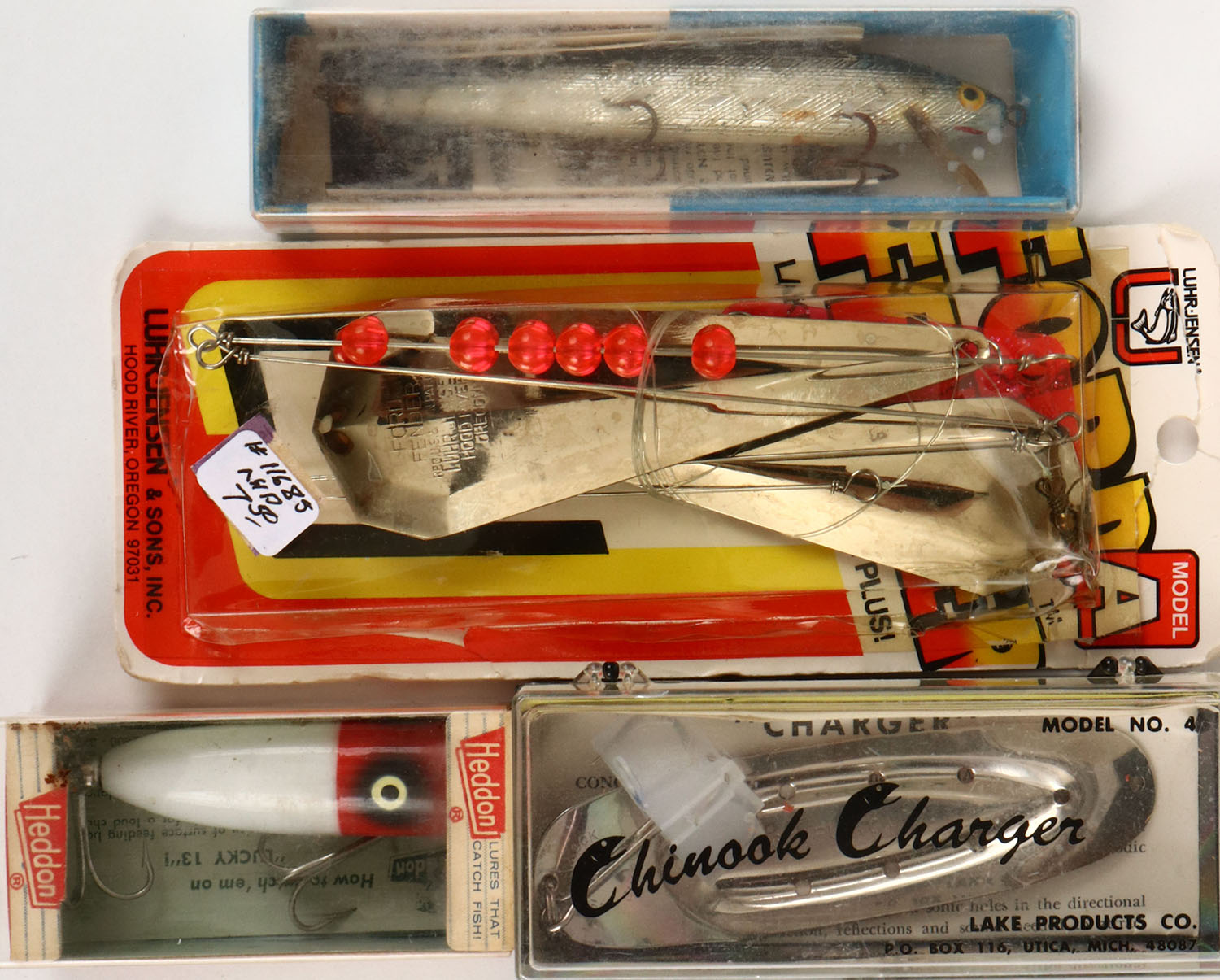 Large lot of fishing lures in boxes. Grade: Excellent - Value: 10 to 50