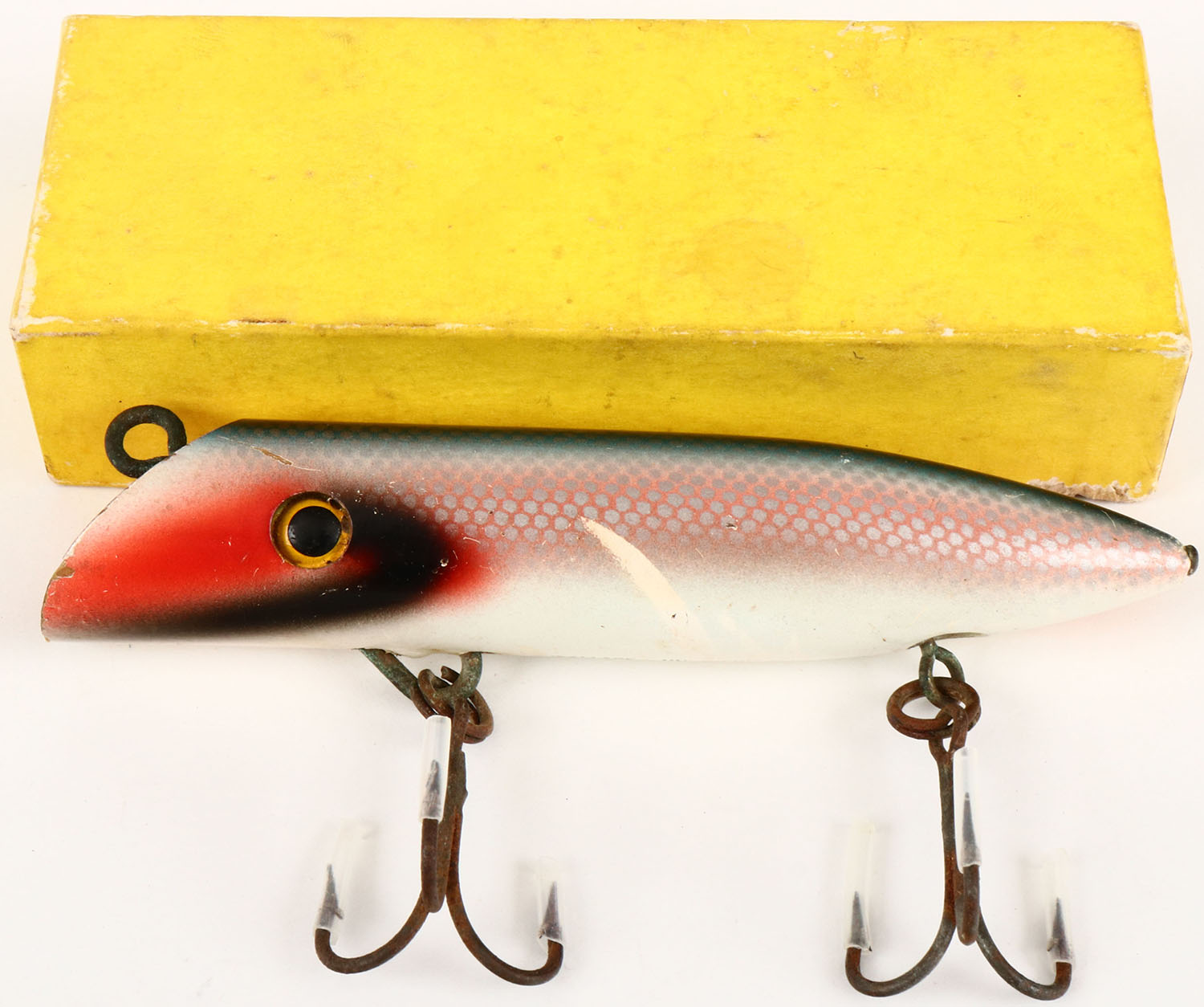 Wallace Highliner Salmon Plug in the original box, CE, well marked, white with red lip. Grade: Excellent - Value: 10 to 30