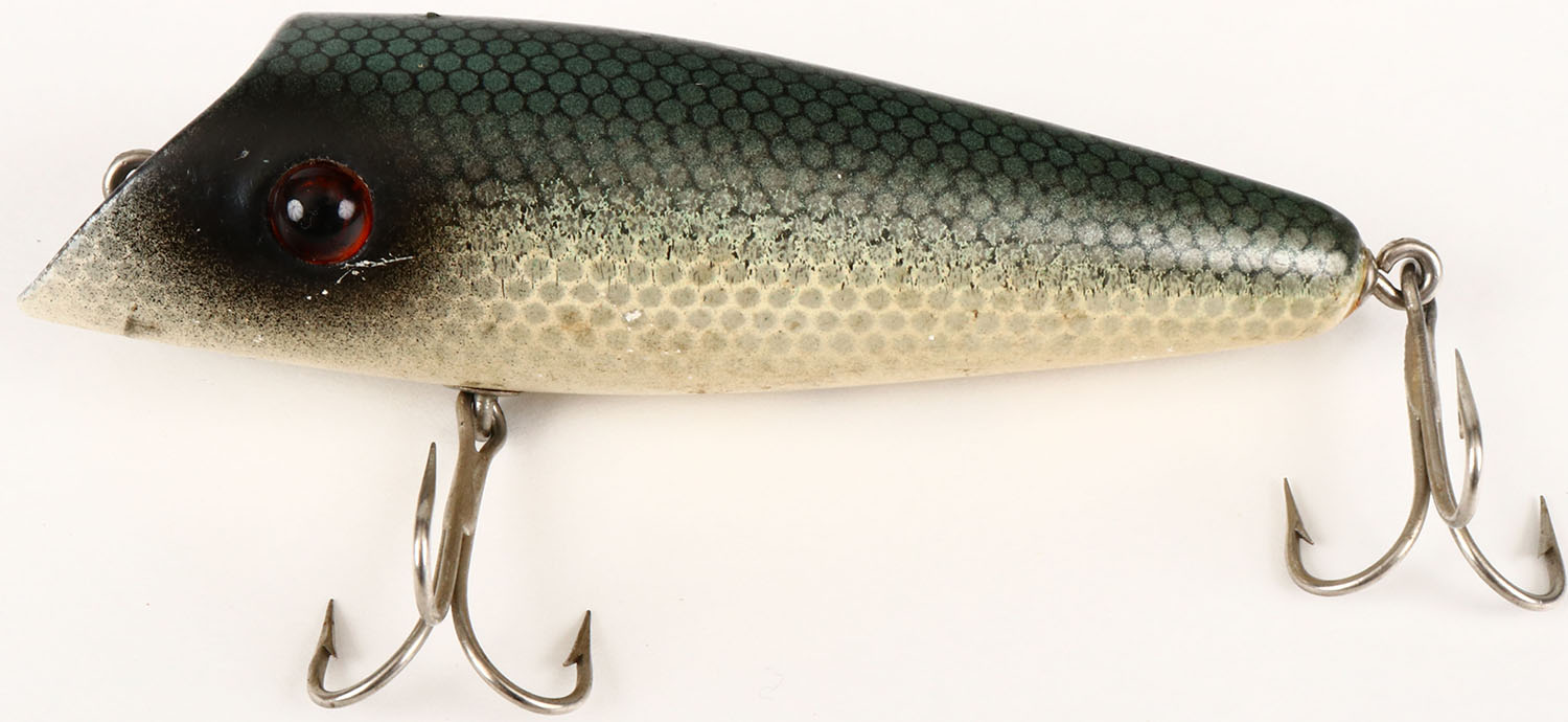 Kokanee Salmon Plug, GE, well marked, dark green & white scale Grade: Excellent - Value: 10 to 30