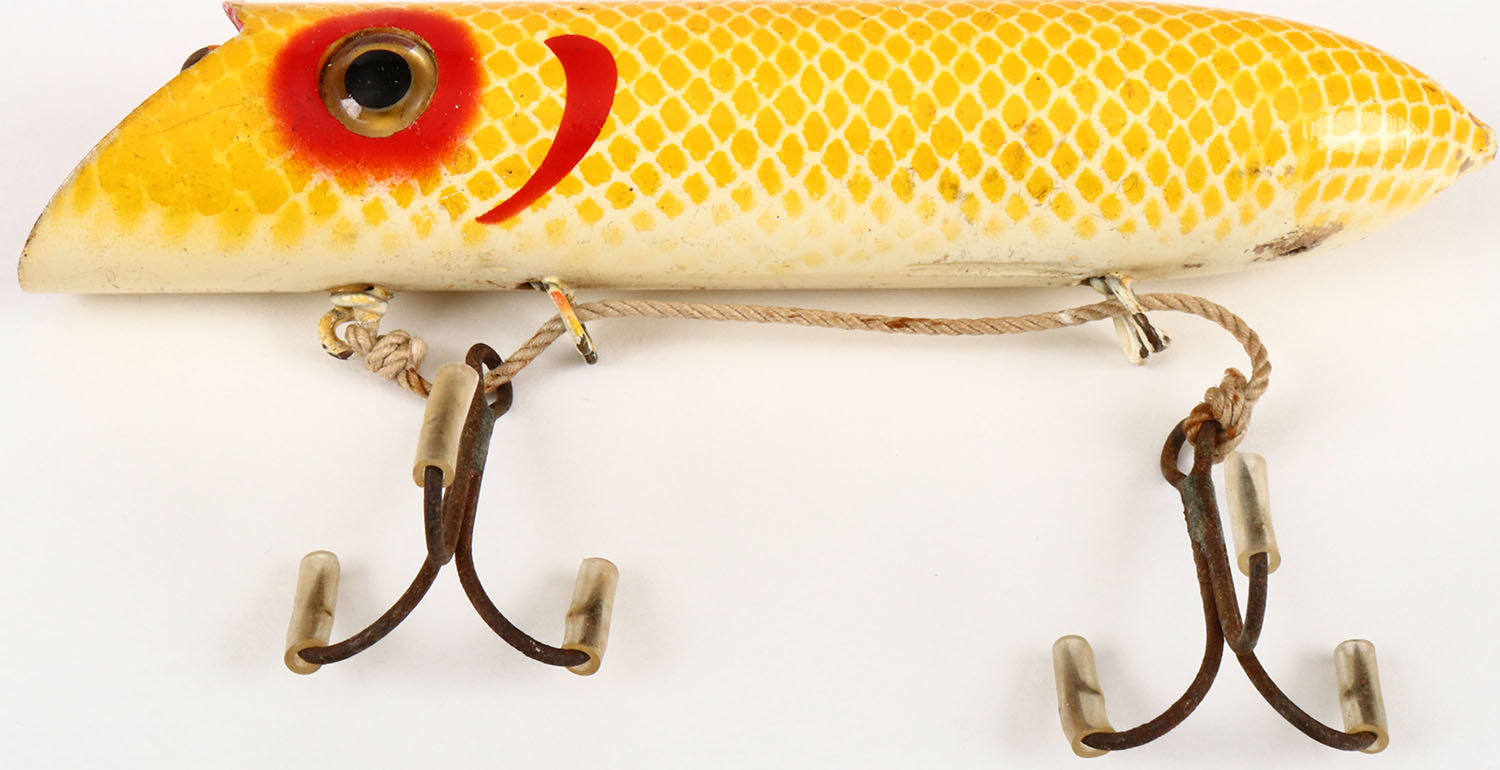 Unmarked Salmon Plug, GE, unmarked, yellow scale. Grade: Excellent + - Value: 10 to 30