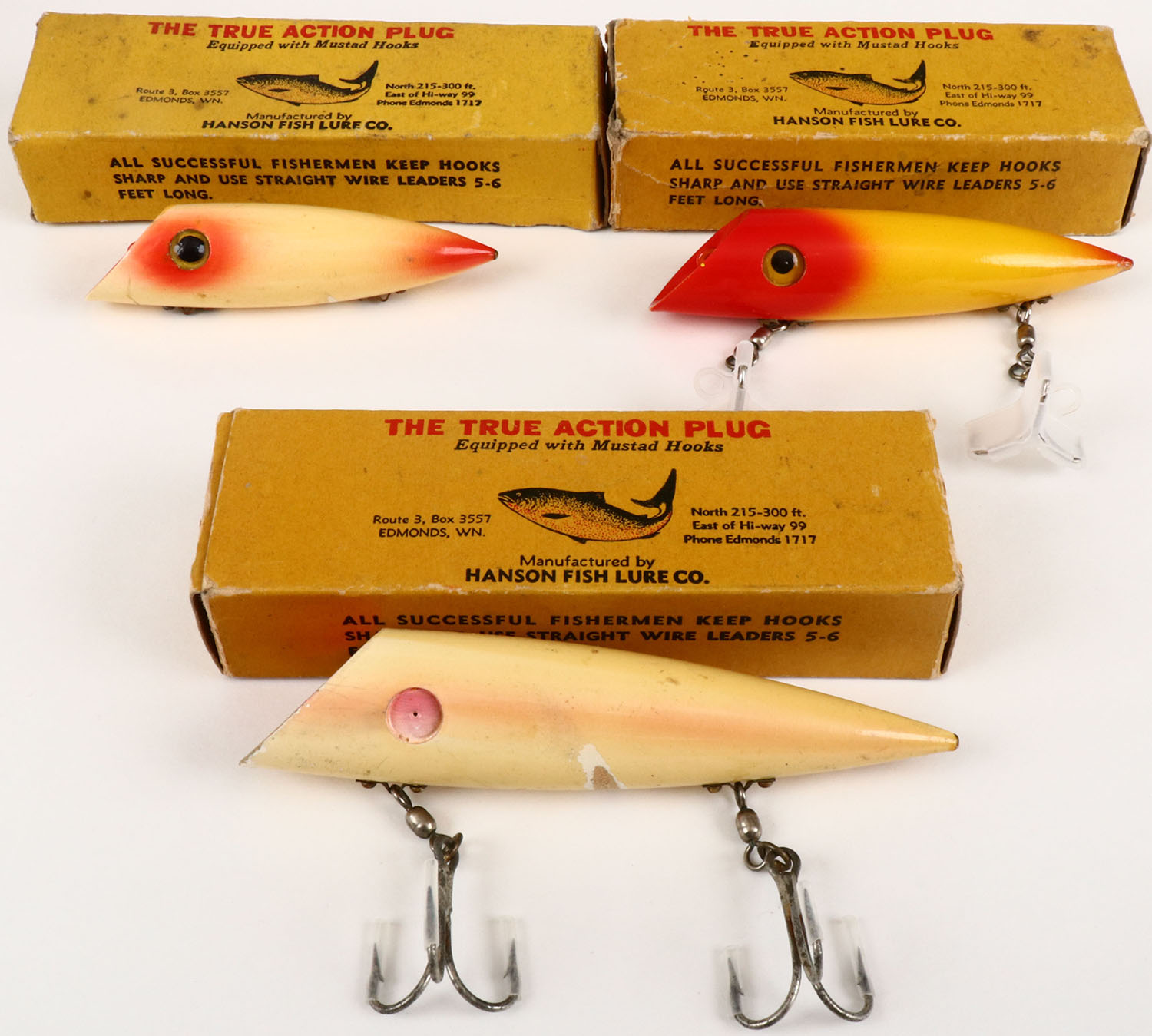 Lot of 2 Hanson Salmon plugs in original boxes. Grade: Very Good ++ - Value: 10 to 60