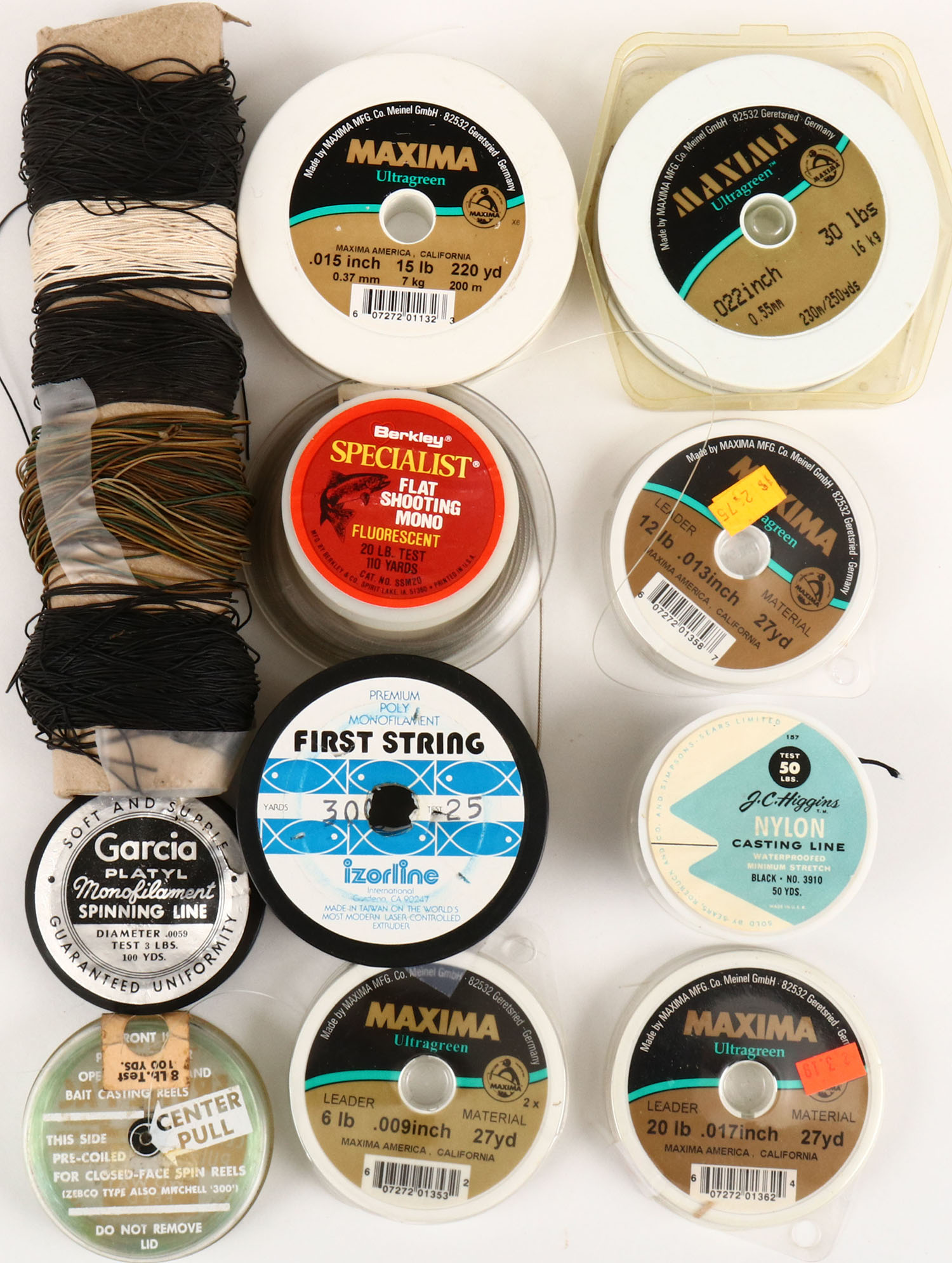 Large lot of modern fishing line on spools. Grade: Excellent - Value: 10 to 60