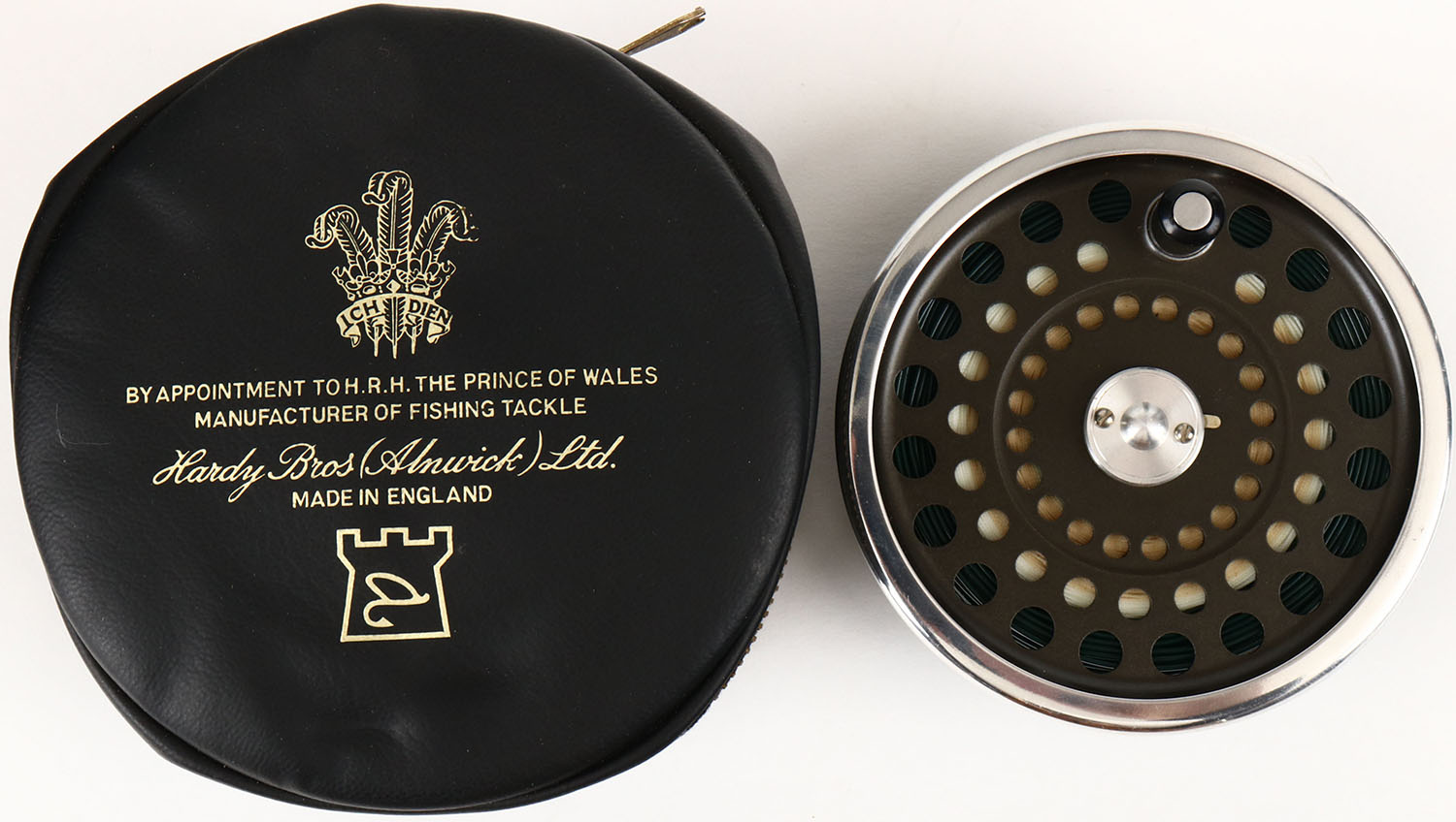 Hardy Bros. Fly Reel Spool, wonderful condition & great working order, 3 5/8'' dia., has original leather pouch. Grade: Excellent ++ - Value: 40 to 150