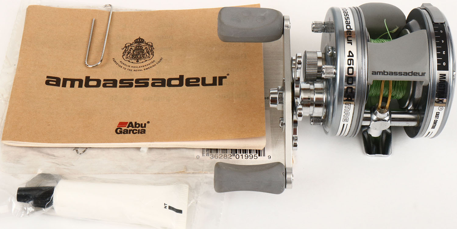 ABU Garcia Ambassadeur No. 4600C4 MAG level wind reel, has paperwork & oil with tool. Grade: MINT - Value: 50 to 200
