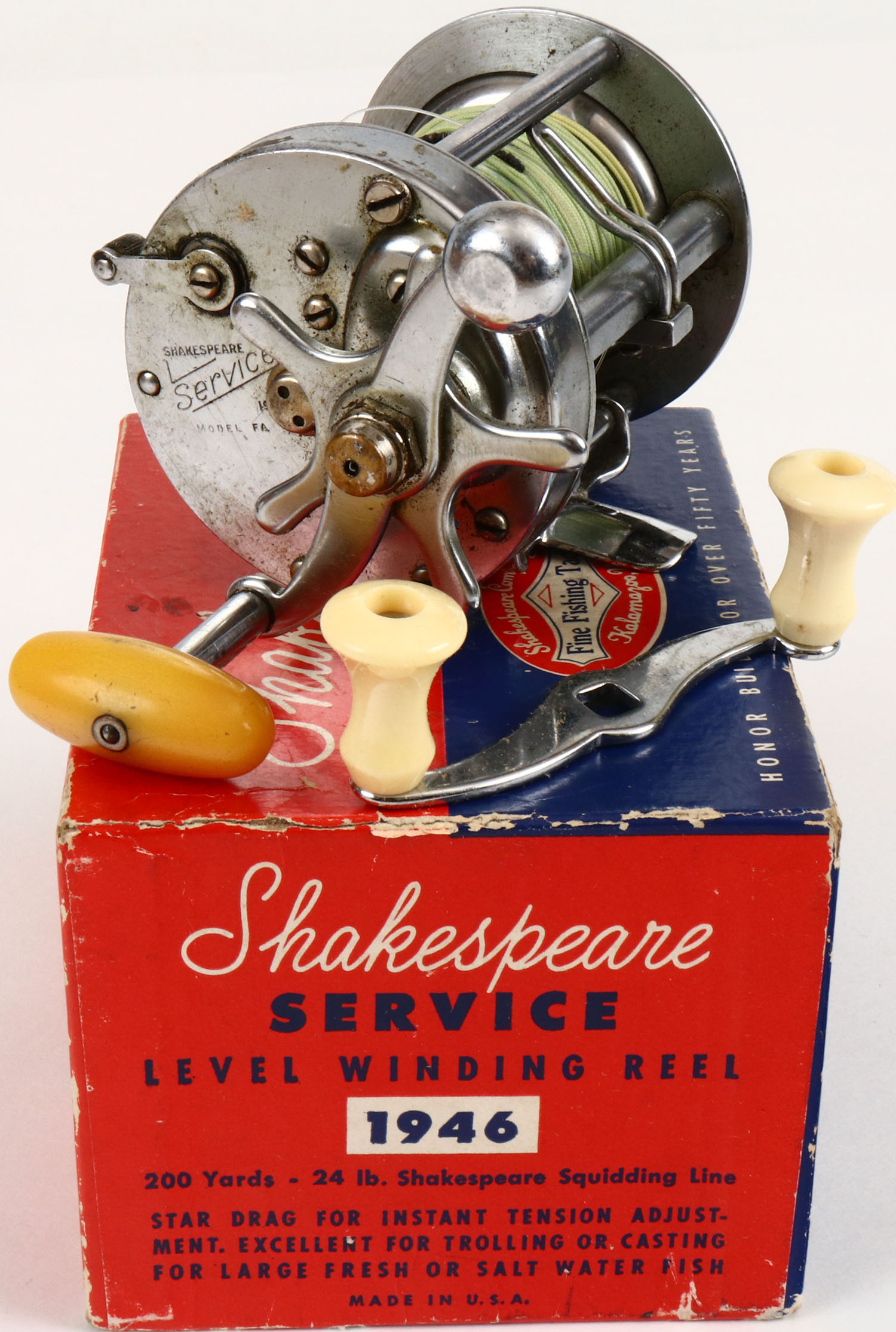 Shakespeare Service Nol 1946 FA level wind reel in the original box, has paperwork & spare dual handle. Grade: Excellent - Value: 10 to 50