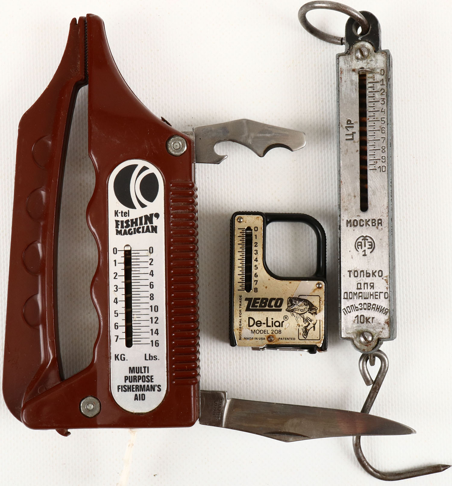 Lot of 3 Fishing scales for measuring weight. Grade: Excellent - Value: 6 to 50
