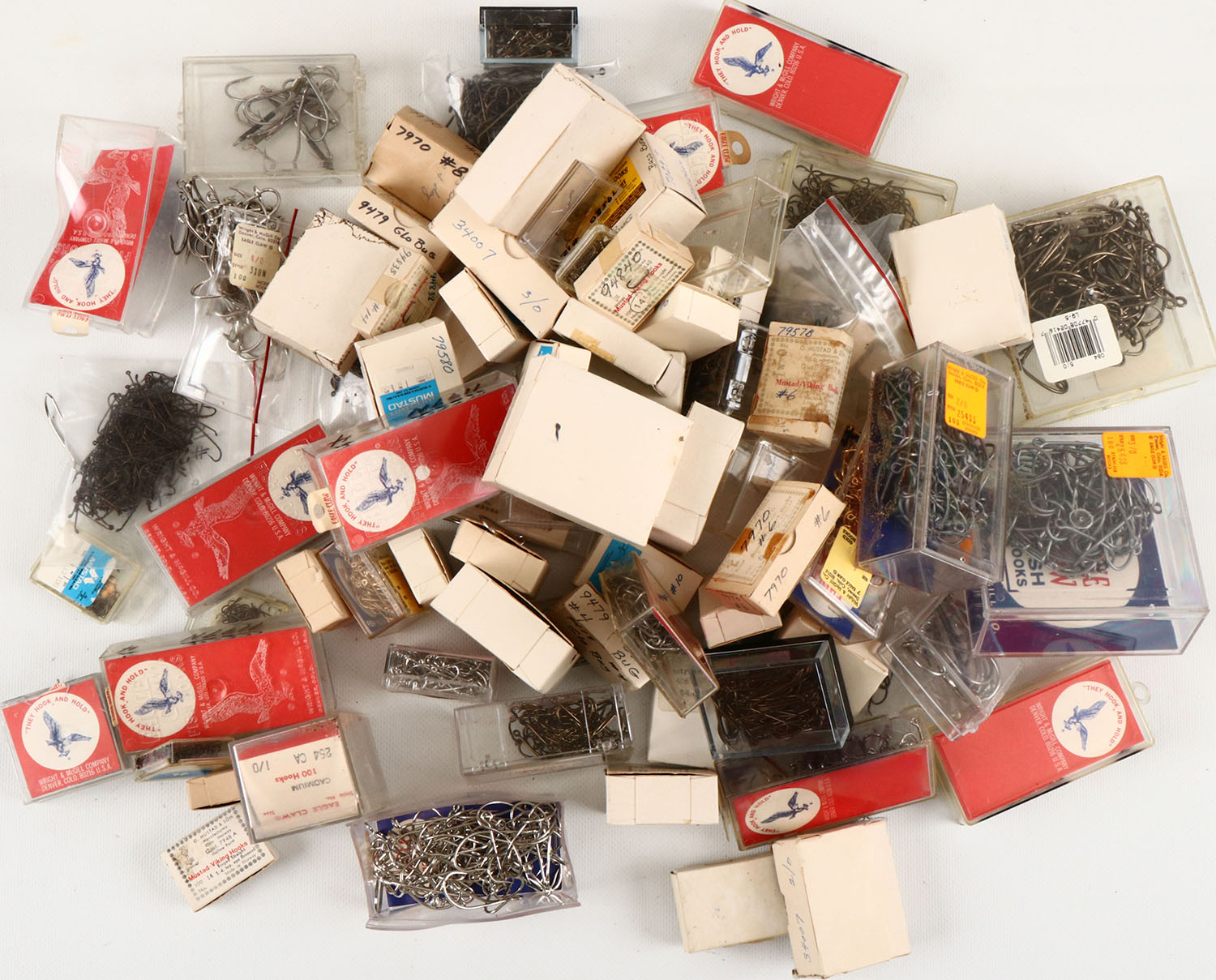 Large Lot of Hooks in original boxed, every type, size & brand. Grade: Excellent - Value: 50 to 300