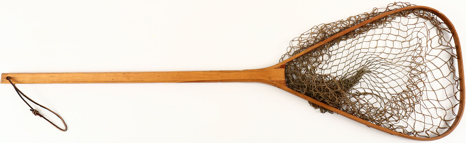 Jim Harvey fishing net, 17 1/2'' net with 29'' wood handle, well marked. Grade: Excellent - Value: 20 to 100