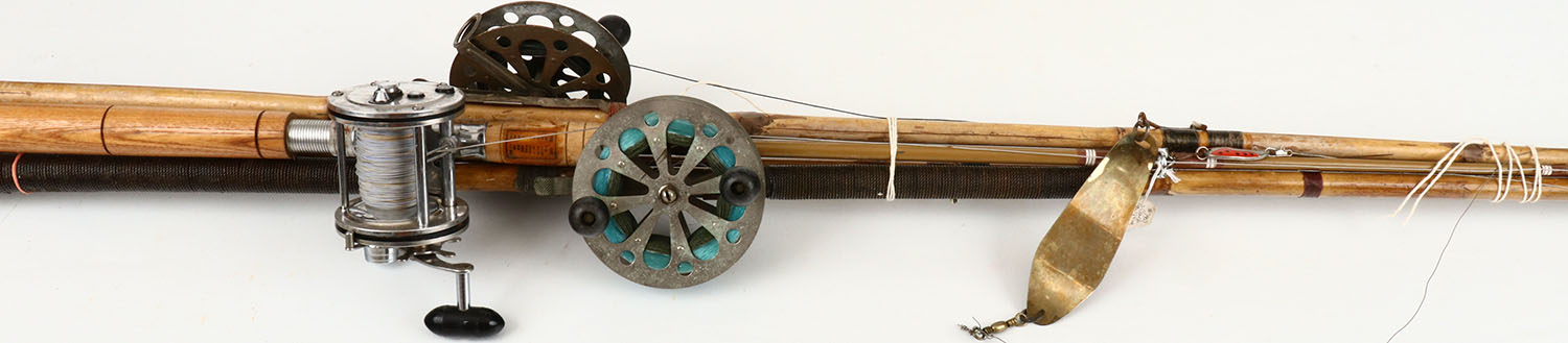 Lot of 3 Bamboo Casting rods with reels for salmon & steelhead fishing. Grade: Excellent - Value: 20 to 200