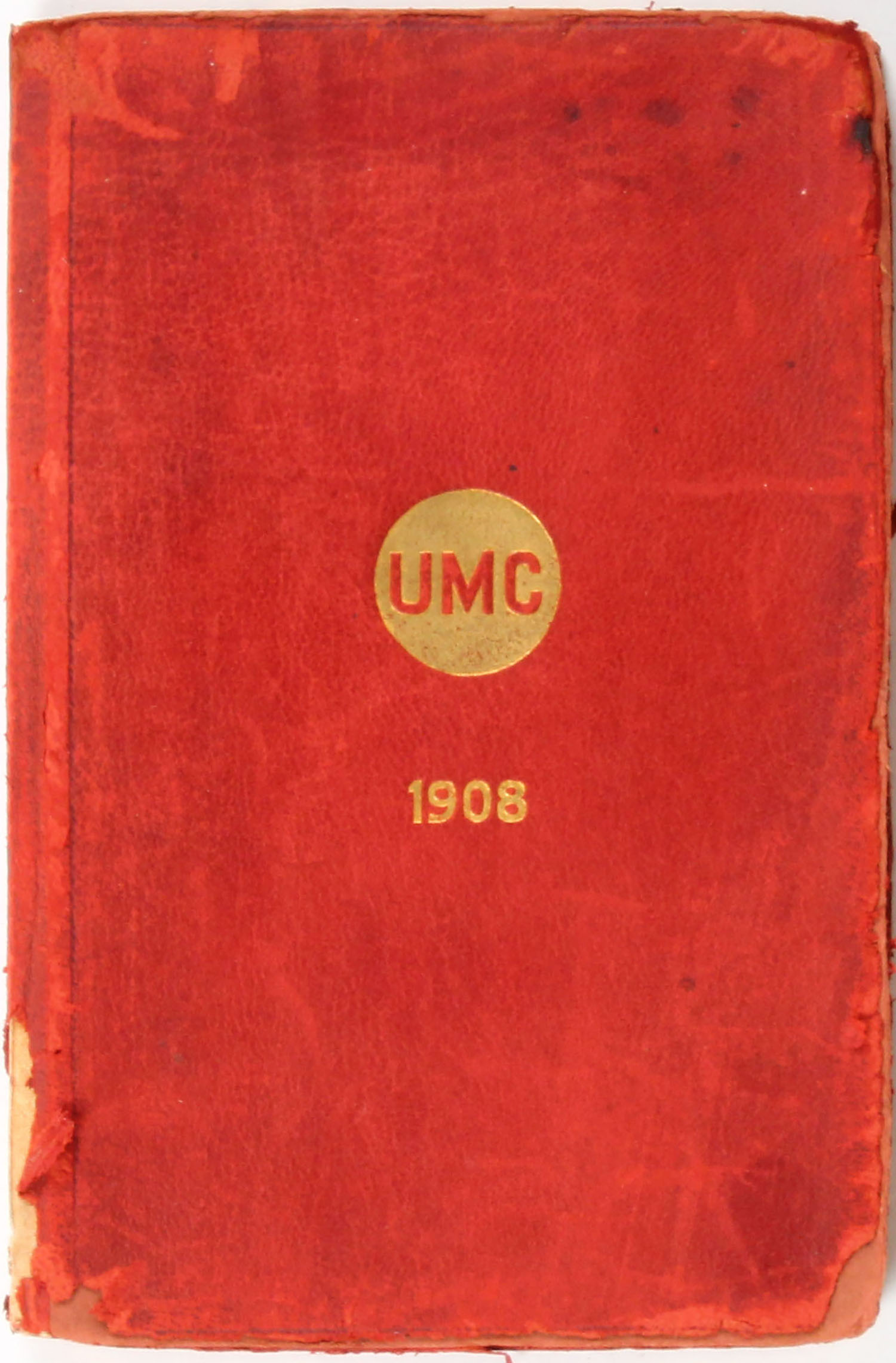 U.M.C. Ammunition, Metallic Cartridges, Empty and Loaded Paper Shells, Primers, Gun Wads. 1908, 4 1/2'' x 7''. 86 pages, pages clean, binding tight, softcover good with some tearing and stains. Grade: Very Good ++ - Value: 10 to 100