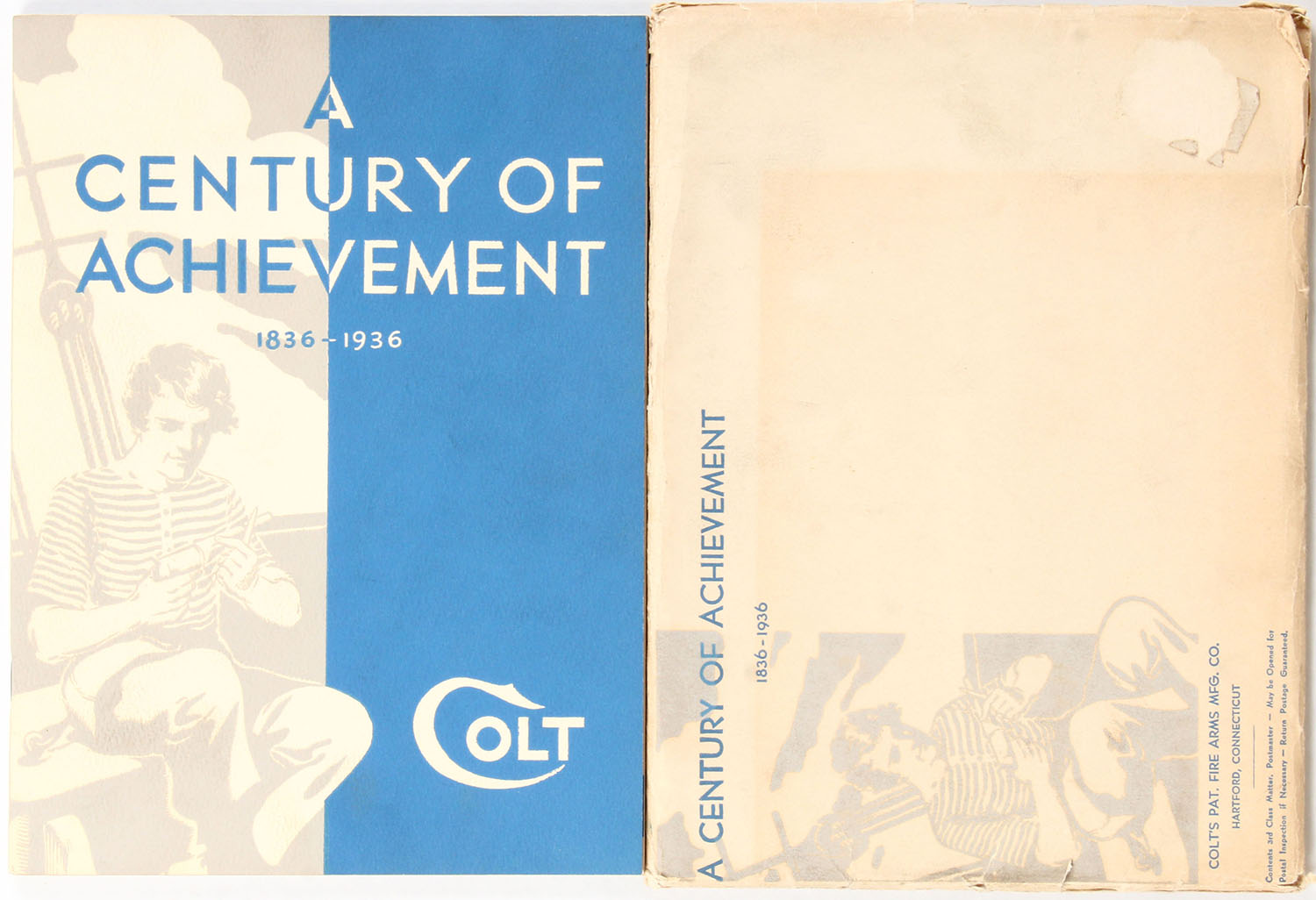 Colt's 100th Anniversary Fire Arms Manual: A Century of Achievement 1836-1936. 7'' x 9''. 96 pages, comes in envelope, pages clean, staplebound. Grade: Excellent + - Value: 2 to 200