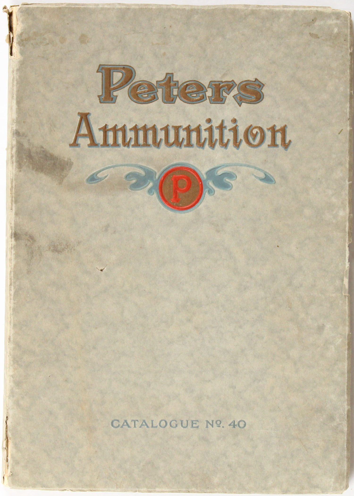 Peters Ammunition Catalogue No. 40, 7'' x 10''. 125 pages, pages clean, binding tight, papercover good with some tearing and stains, colored images. Grade: Very Good + - Value: 2 to 50