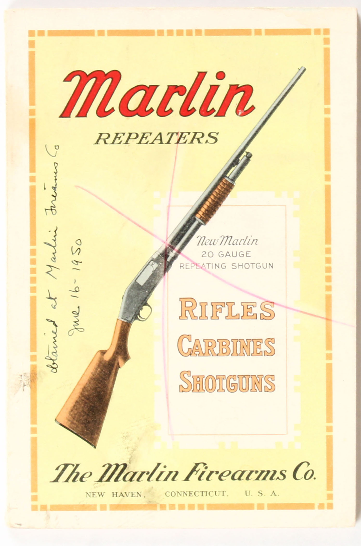Marlin Repeaters 1915, 136 pages, 5 1/4'' x 7 3/4''. Pages clean, b/w images, cover has an ''x'' drawn on it and other writing, binding tight. Grade: Very Good ++ - Value: 20 to 200