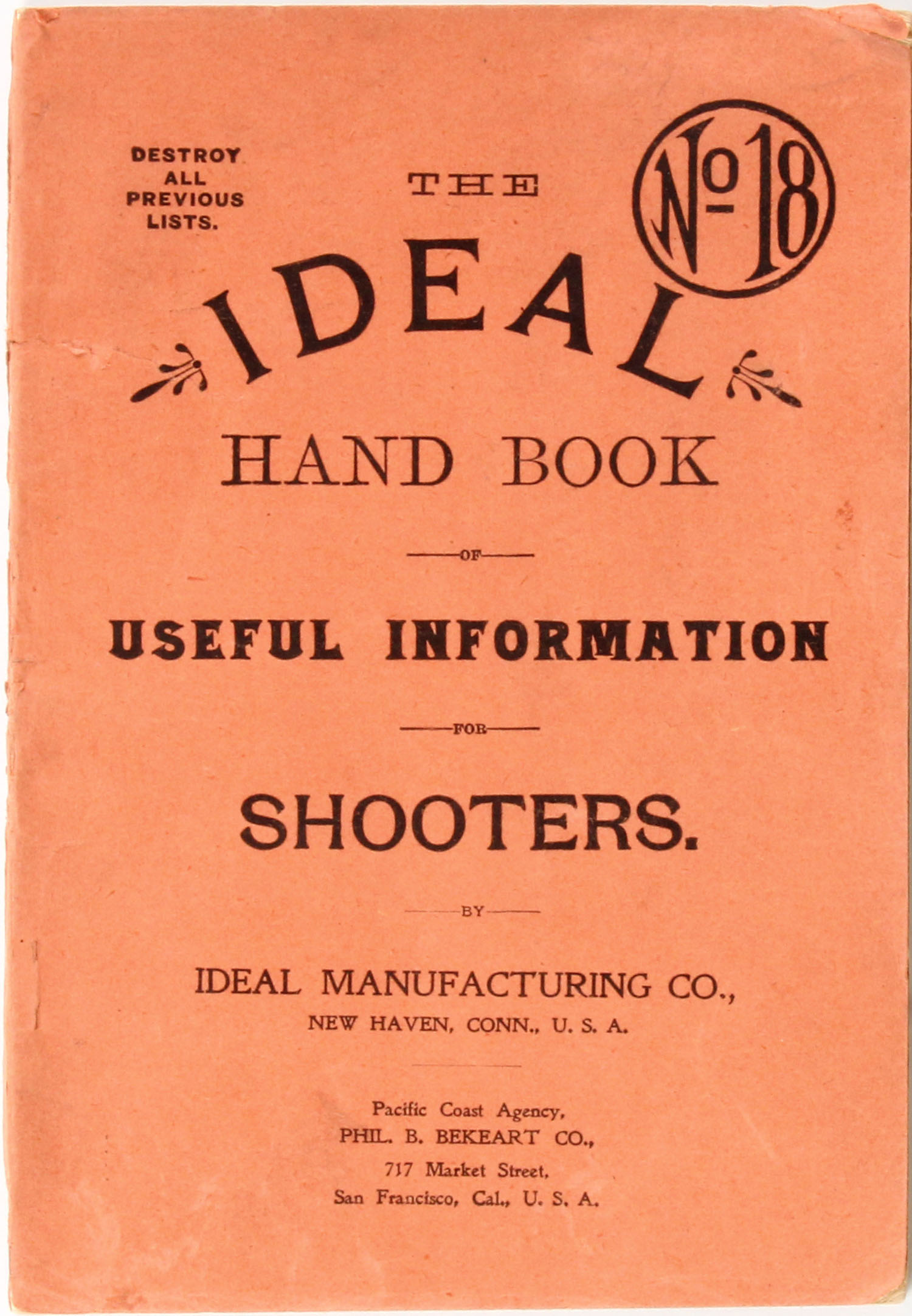 The Ideal Handbook of Useful Information for Shooters by Ideal Manufacturing Co. 5 1/2'' x 8''. 147 pages, pages clean, binding tight, papercover good with some tears. Grade: Very Good + - Value: 2 to 100