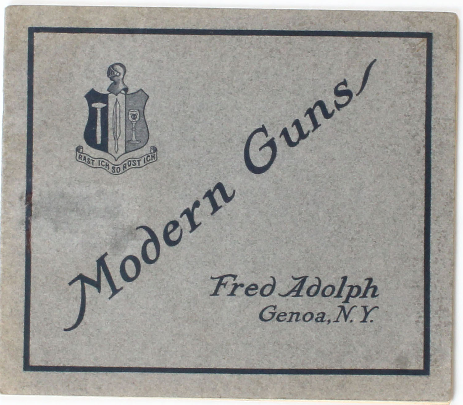 RARE! Modern Guns Fred Adolph Genoa, N.Y. 1912, 9 1/2'' x 8''. 24 pages, pages clean, staplebound, papercover very good. Grade: Excellent - Value: 2 to 200