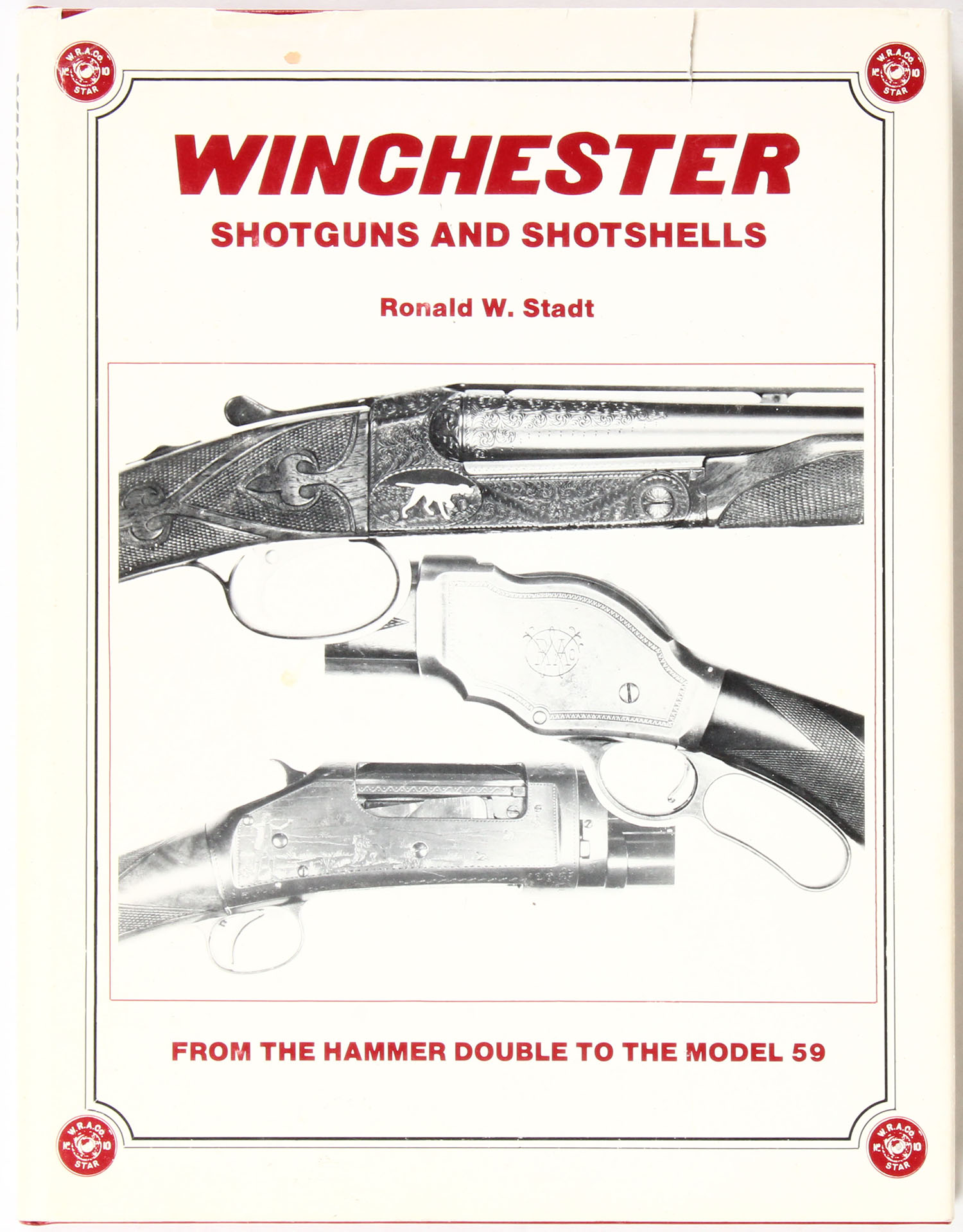 Winchester Shotguns and Shotshells - From the Hammer Double to the Model 59 by Ronald W. Stadt, 8 1/2'' x 11''. 184 pages, pages clean, binding tight, hardcover and dustjacket very good, dustjacket has some tears, B/W images. Grade: Very Good ++ - Value: 2 to 200