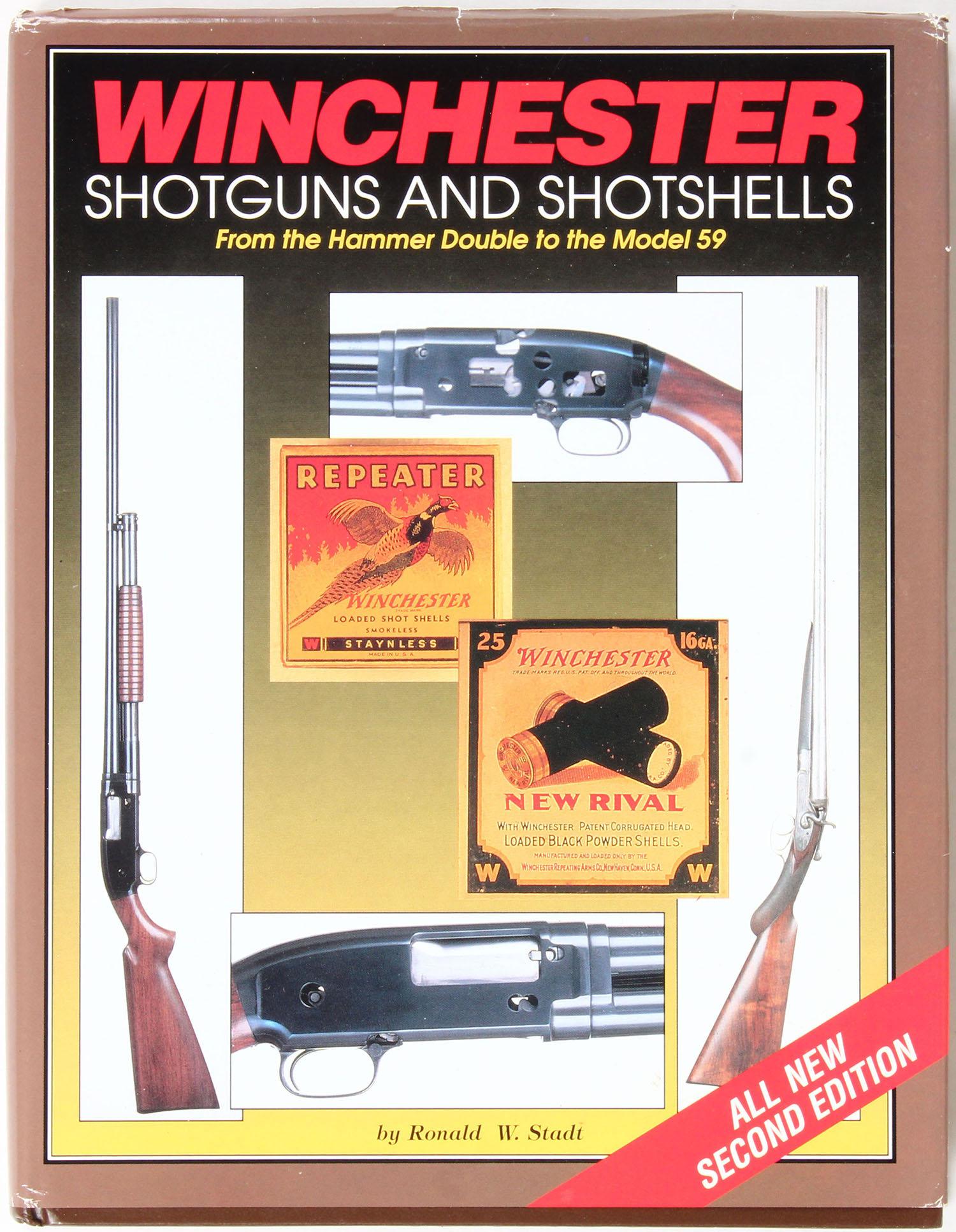 Winchester Shotguns and Shotshells: From the Hammer Double to the Model 59 - Second Edition ( 2nd Edition ) by Ronald W. Stadt, 8 1/2'' x 11''. 288 pages, pages clean, binding tight, hardcover and dustjacket very good, B/W images. Grade: Very Good ++ - Value: 2 to 100