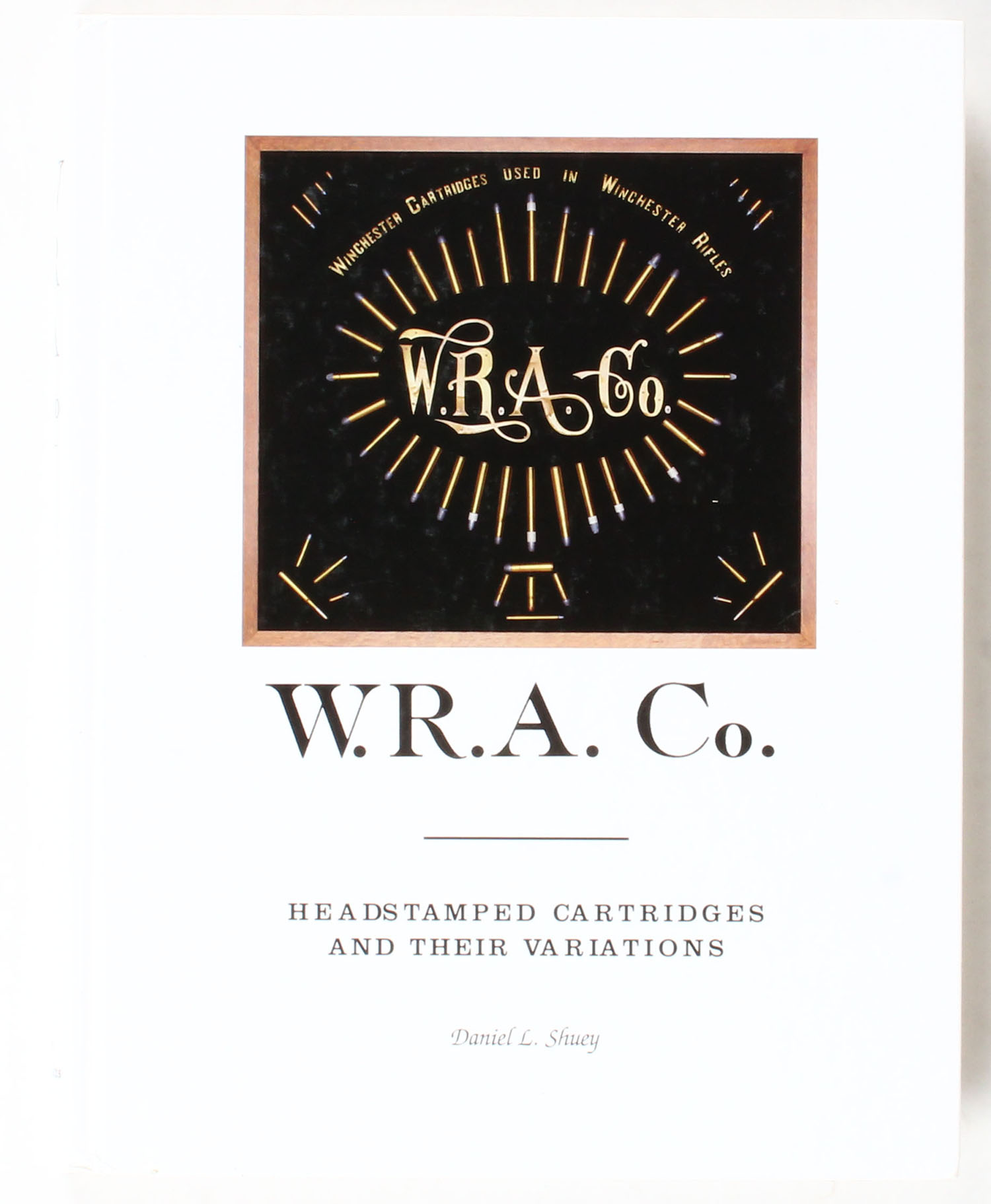 W.R.A. Co. Headstamped Cartridges and Their Variations by Daniel L. Shuey Vol. 1 1999. 364 pages, 9'' x 11 1/4''. Hardcover mint, pages clean and bright, binding tight, b/w and full color images and illustrations. Grade: Mint ++ - Value: 2 to 200