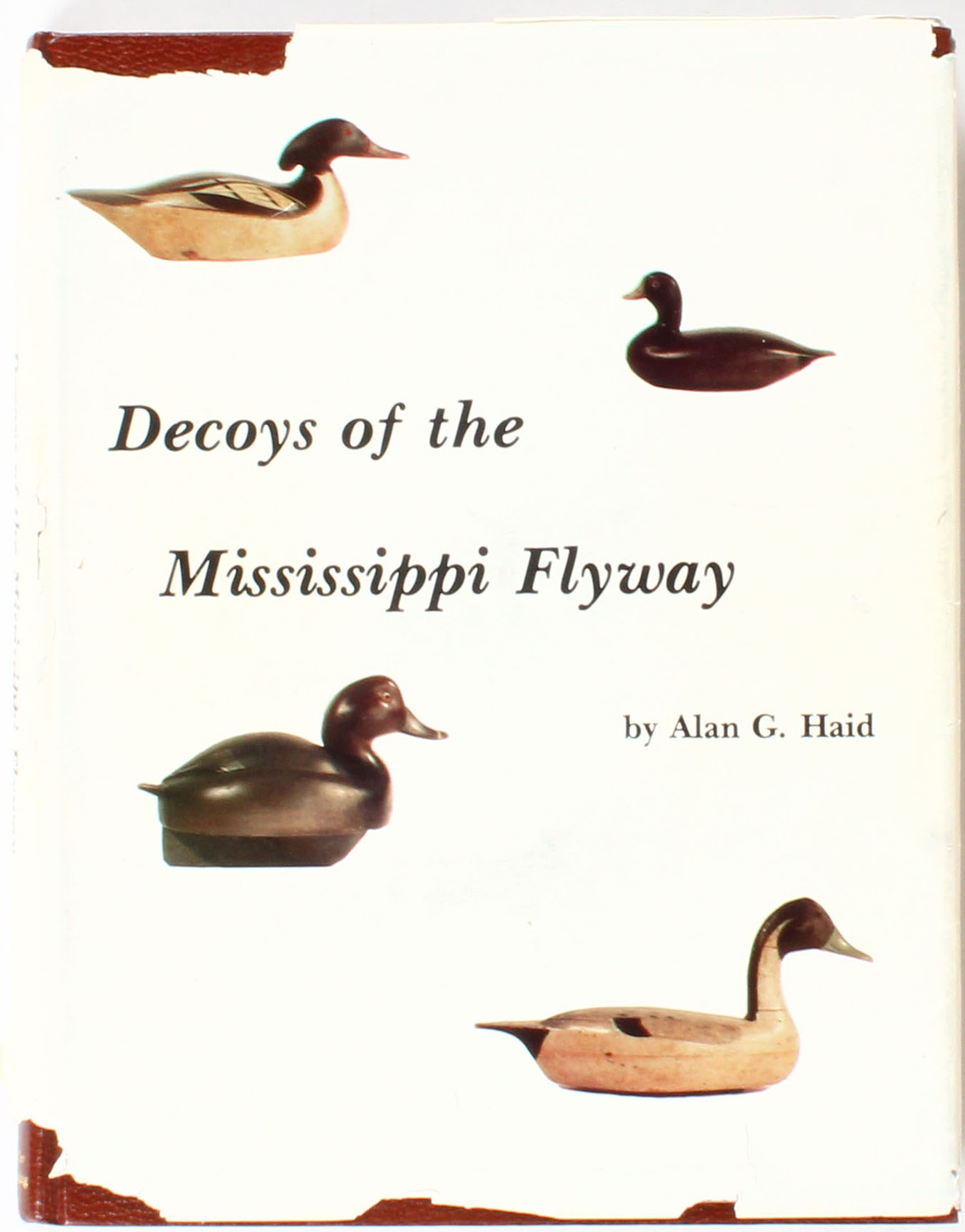 Decoys of the Mississippi Flyway by Alan G. Haid 1981, 9'' x 11 1/2''. 271 pages, pages clean, binding tight, hardcover very good, dustjacket has a lot of tearing, B/W and colored images. Grade: Very Good - Value: 2 to 200