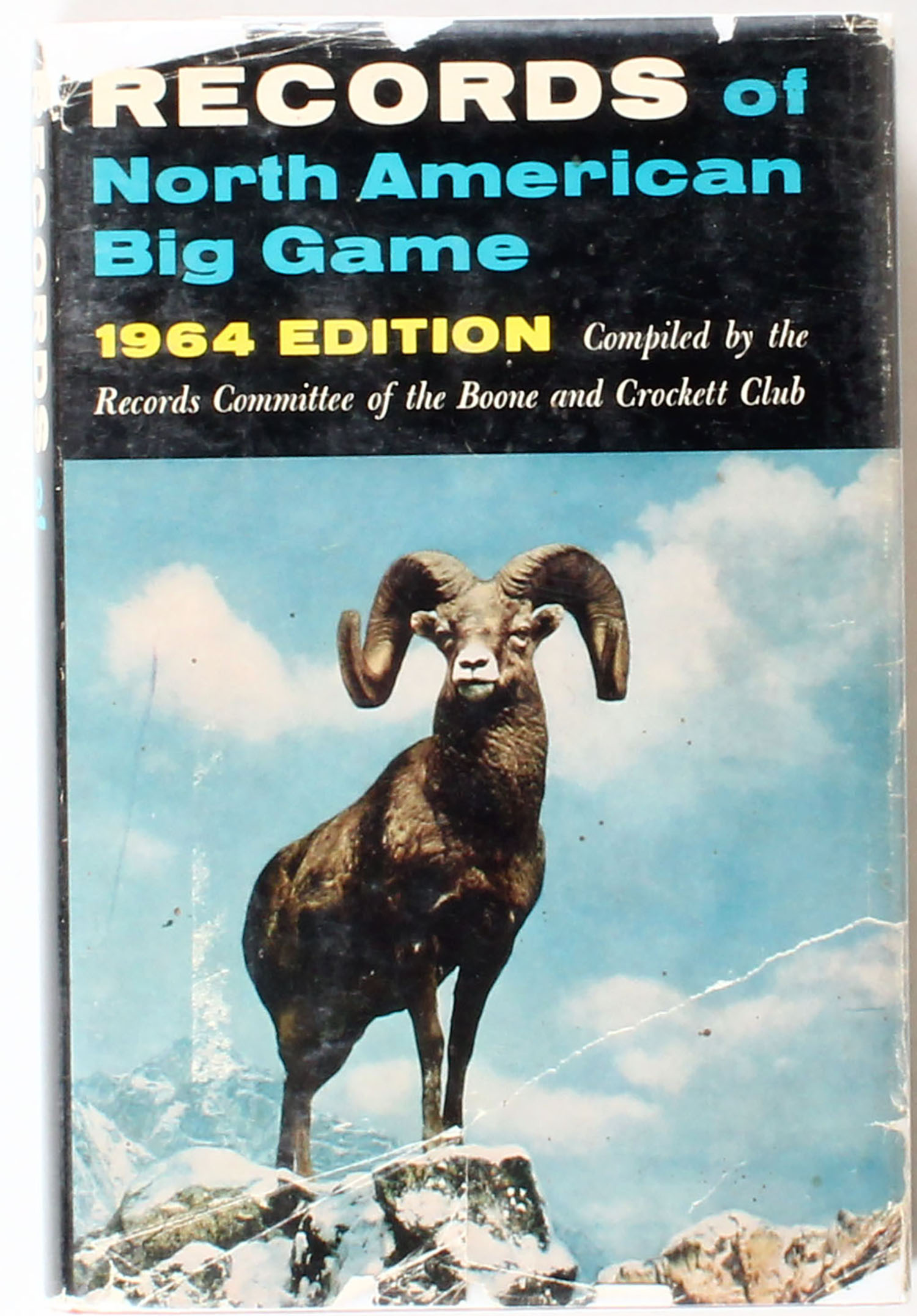 Records of North American Big Game 1964 Edition Compiled by the Records Committee of the Boone and Crockett Club, 6 1/2'' x 9 1/2''. 398 pages, pages clean, binding tight, hardcover and dustjacket very good, B/W images. Grade: Very Good ++ - Value: 2 to 200