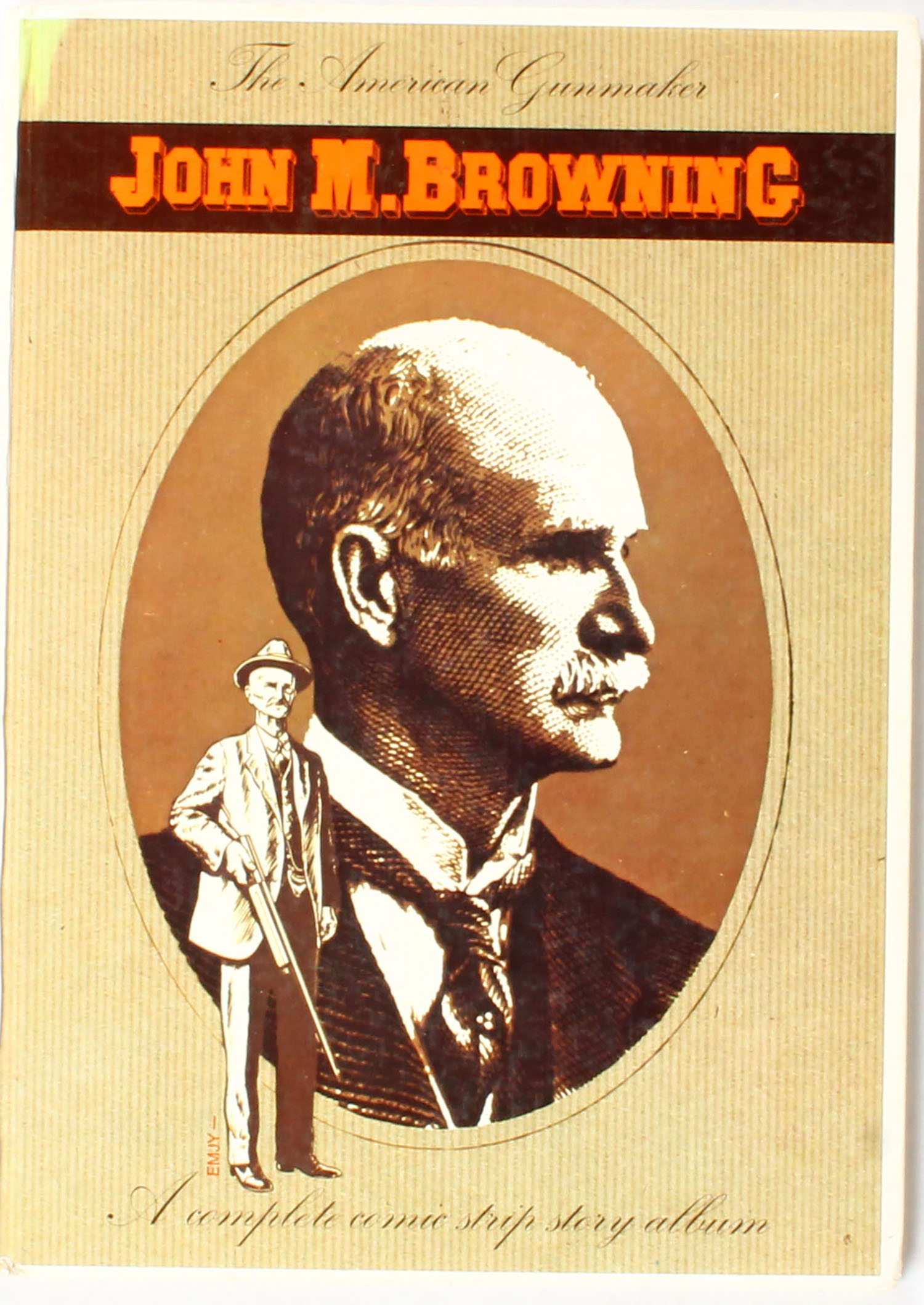 John M. Browning The American Gunmaker A Complete Comic Strip Story Album 1978, 8 1/2'' x 12''. Pages clean, binding tight, hardcover excellent, B/W and colored images. Fairly rare Grade: Very Good ++ - Value: 20 to 150
