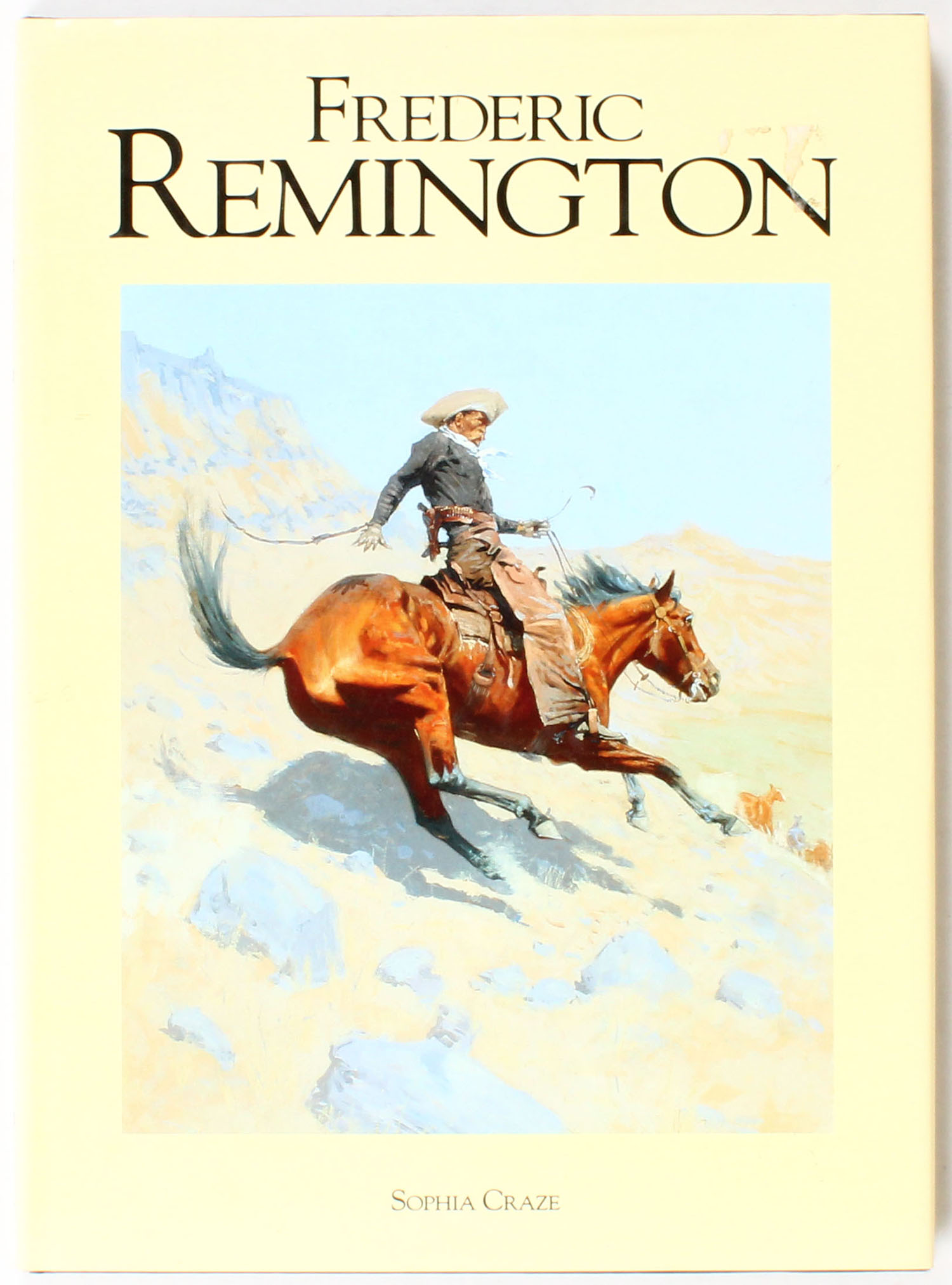 Frederic Remington by Sophia Craze 1989, 10 1/2'' x 14 1/2''. 112 pages, pages clean, binding tight, hardcover and dustjacket mint, colored images. Grade: Excellent ++ - Value: 30 to 100