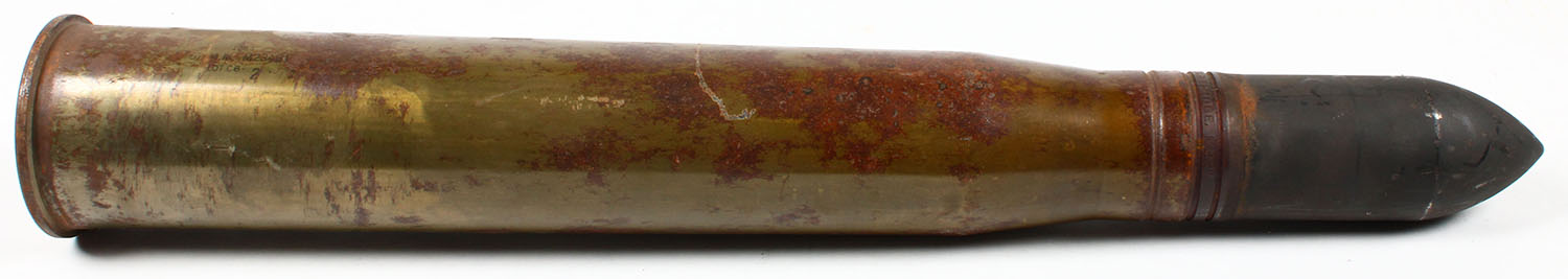Military shell & projectile, projectile marked ''57MM M22'', ''DRILL'', ''CARTRIDGE'', No visible H/S, OAL- 23''. Grade: Very Good - Value: 10 to 100