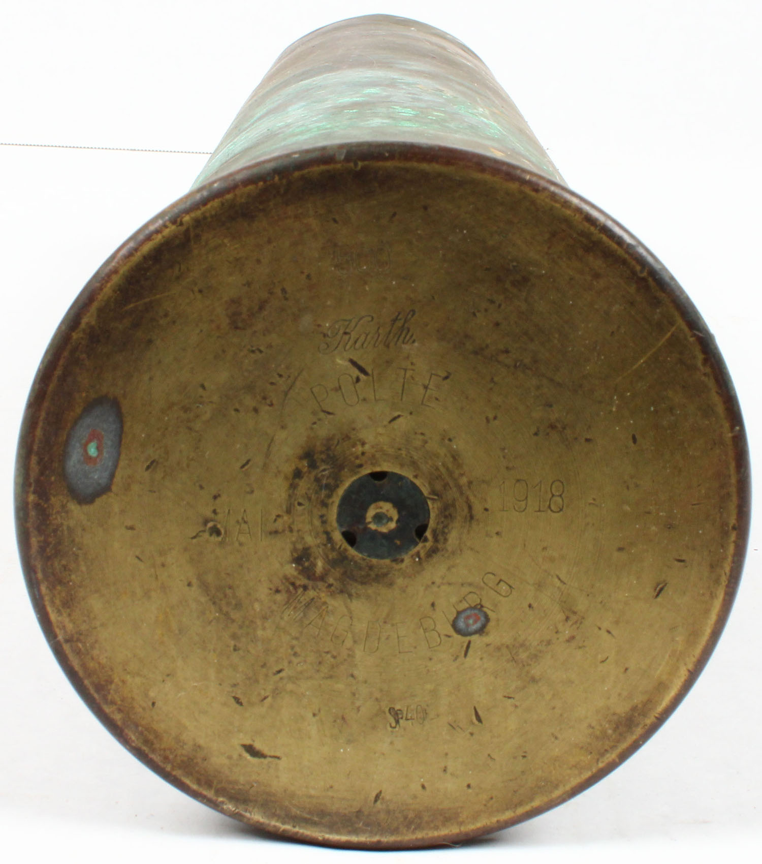German, WW1 100mm, H/S ''500'', ''KARTH'', ''POLTE'', ''MAI 1918'', ''MAGDEBURG'', ''SP40'', OAL-19 3/4''. Grade: Good ++ - Value: 10 to 100