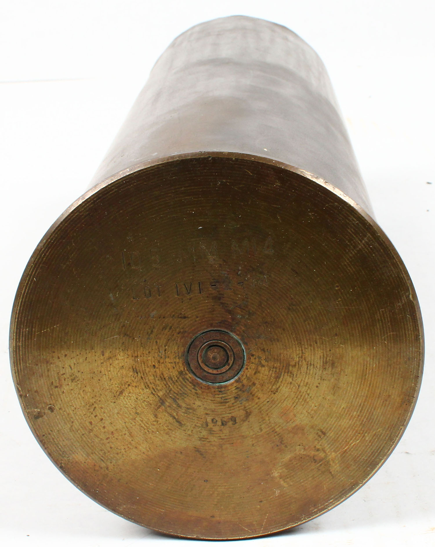 US, 105mm, H/S ''105MM M14'', ''LOT IVI-2-14'', ''1969'', OAL- 14 1/2''. Grade: Very Good + - Value: 10 to 100