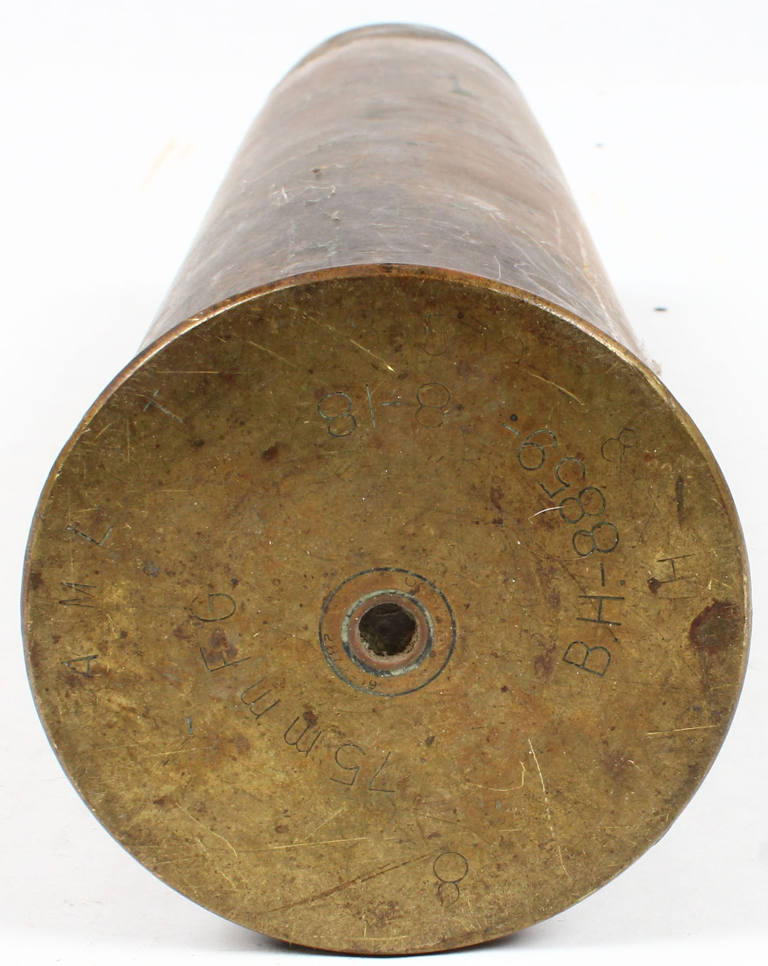 US, 75mm, H/S, Flaming Bomb, ''A. M. LOT8-8-5-9-8-H'', ''75MM F.G.'', ''B.H.-8859- 8-18'', OAL- 13 3/4''. Grade: Very Good + - Value: 10 to 100