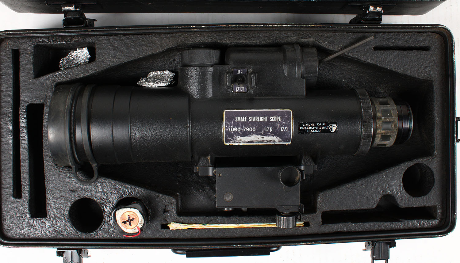 Israeli, AN/PVS-2 Night Vision Scope, missing eye piece, needs correct battery pack, comes with carrying case. Grade: Excellent - Value: 200 to 1000