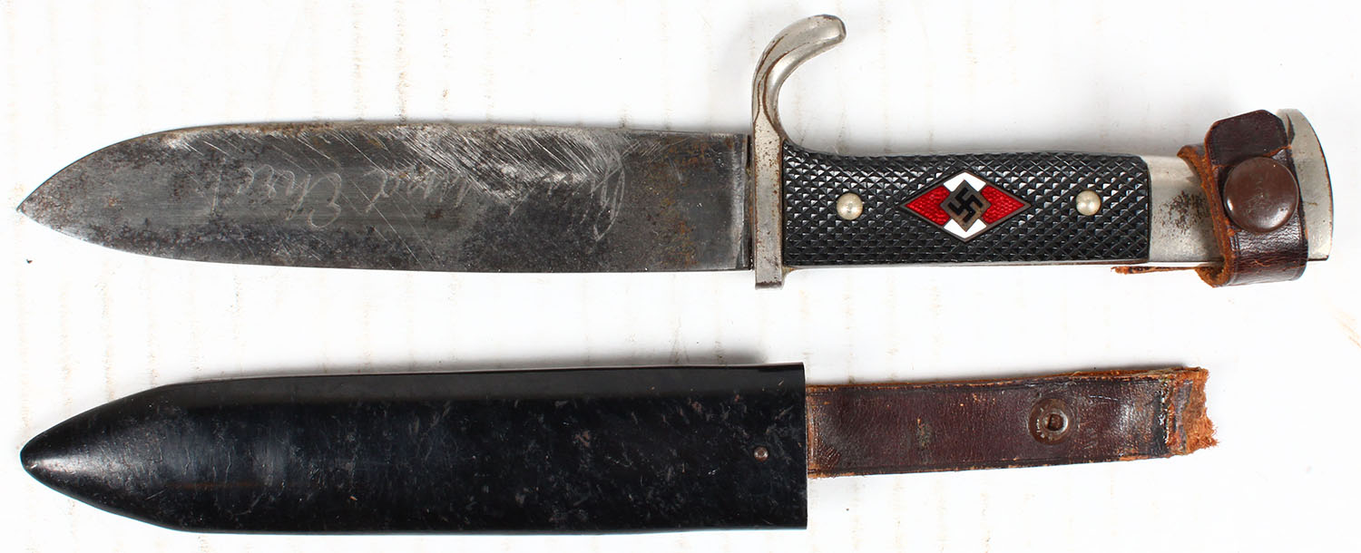 | German, Hitler Youth Knife, handle marked with small red/white e...