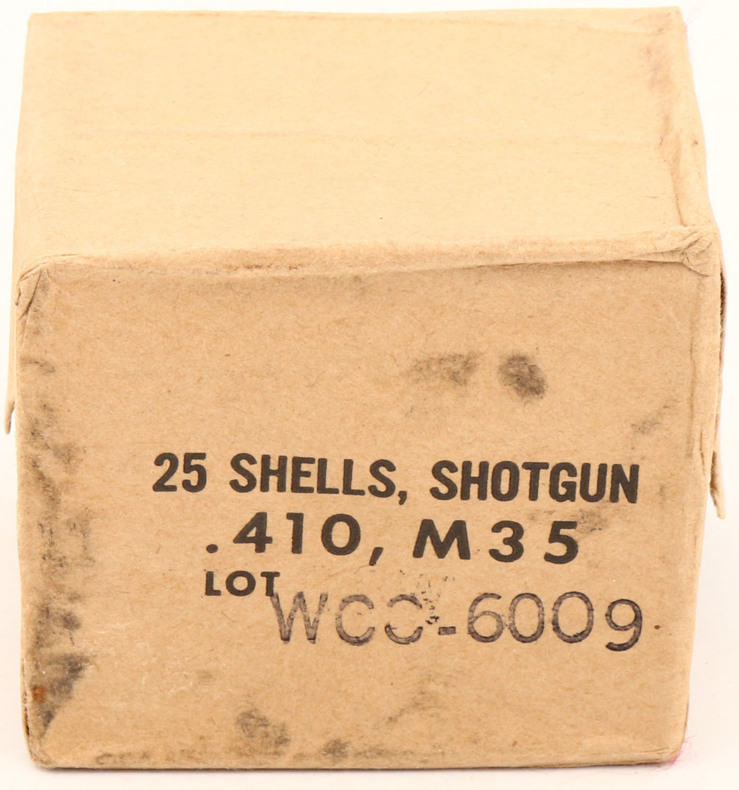 Western, .410 M35, foil wrap, FULL & SEALED, buff wrap with black print, Wrap is solid with light age soiling, light rub marks & light edge wear. Grade: Excellent - Value: 20 to 60