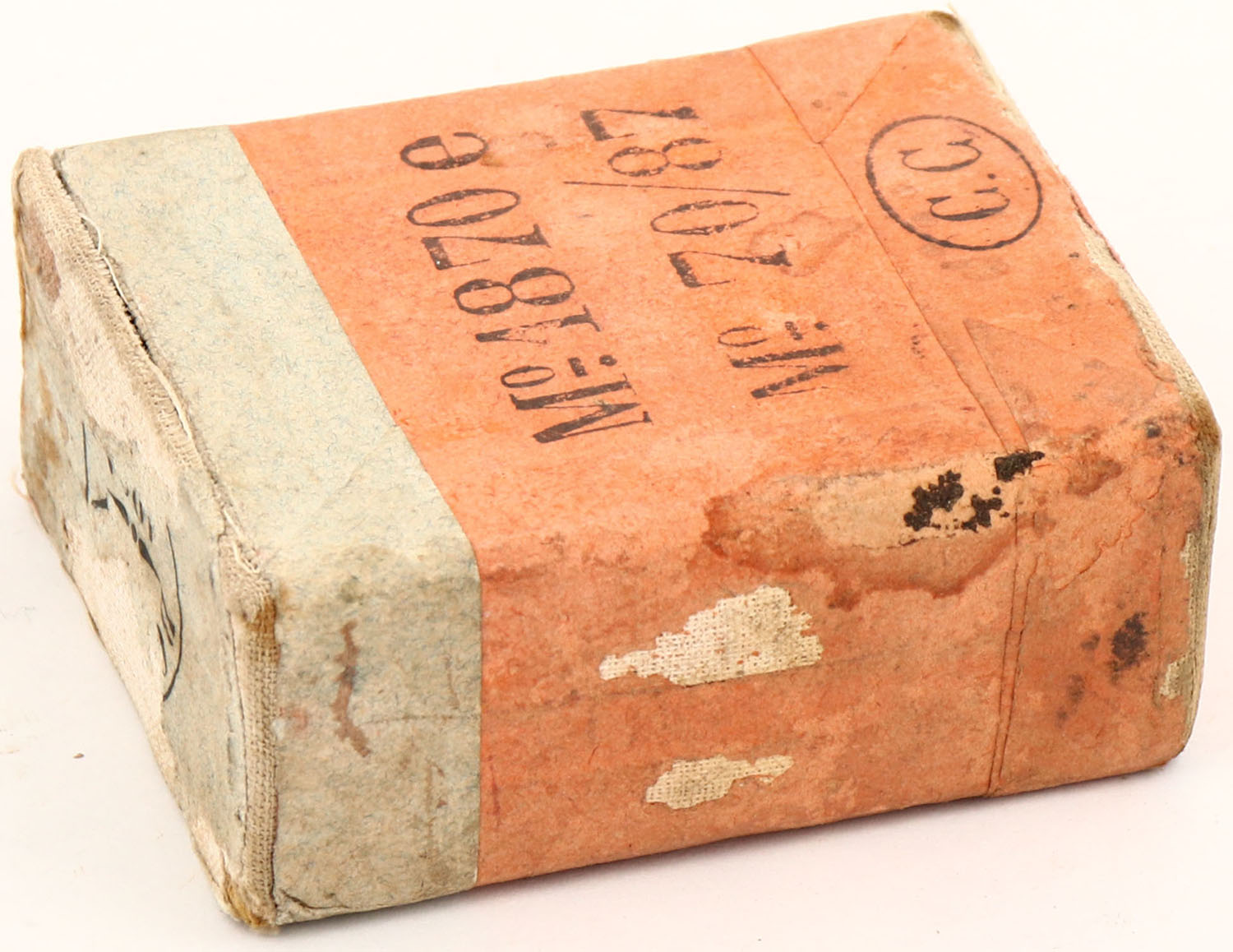 Italian, 10.4 x 47mmR, 1pc, Full, gray box with orange label & black print, box is solid with age soiling, rub marks & edge wear, ammo is good. (990) Grade: Very Good ++ - Value: 10 to 100