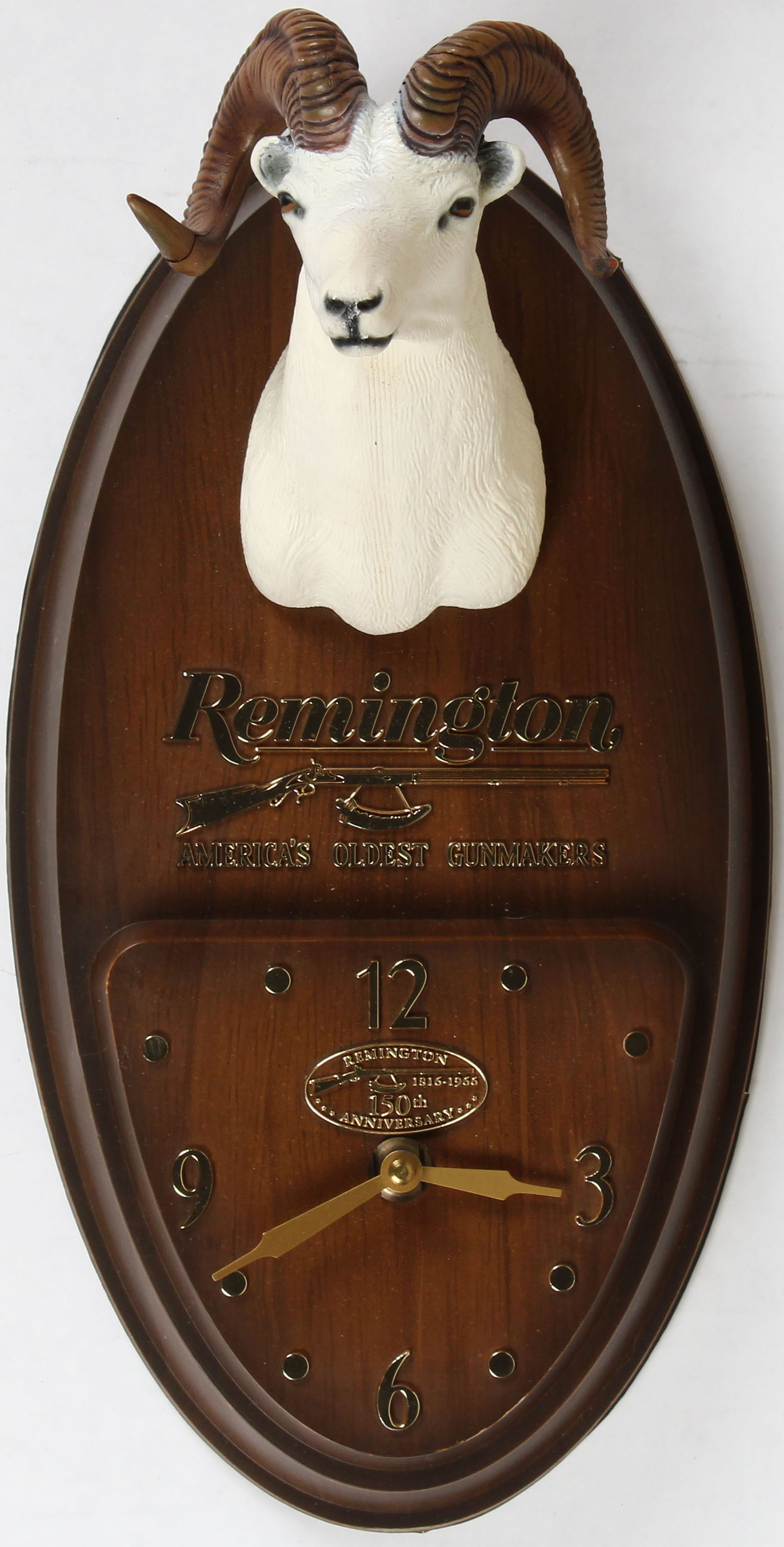 Remington Dall Sheep wall clock, wire has been cut off in back otherwise mint. Grade: Excellent - Value: 20 to 150
