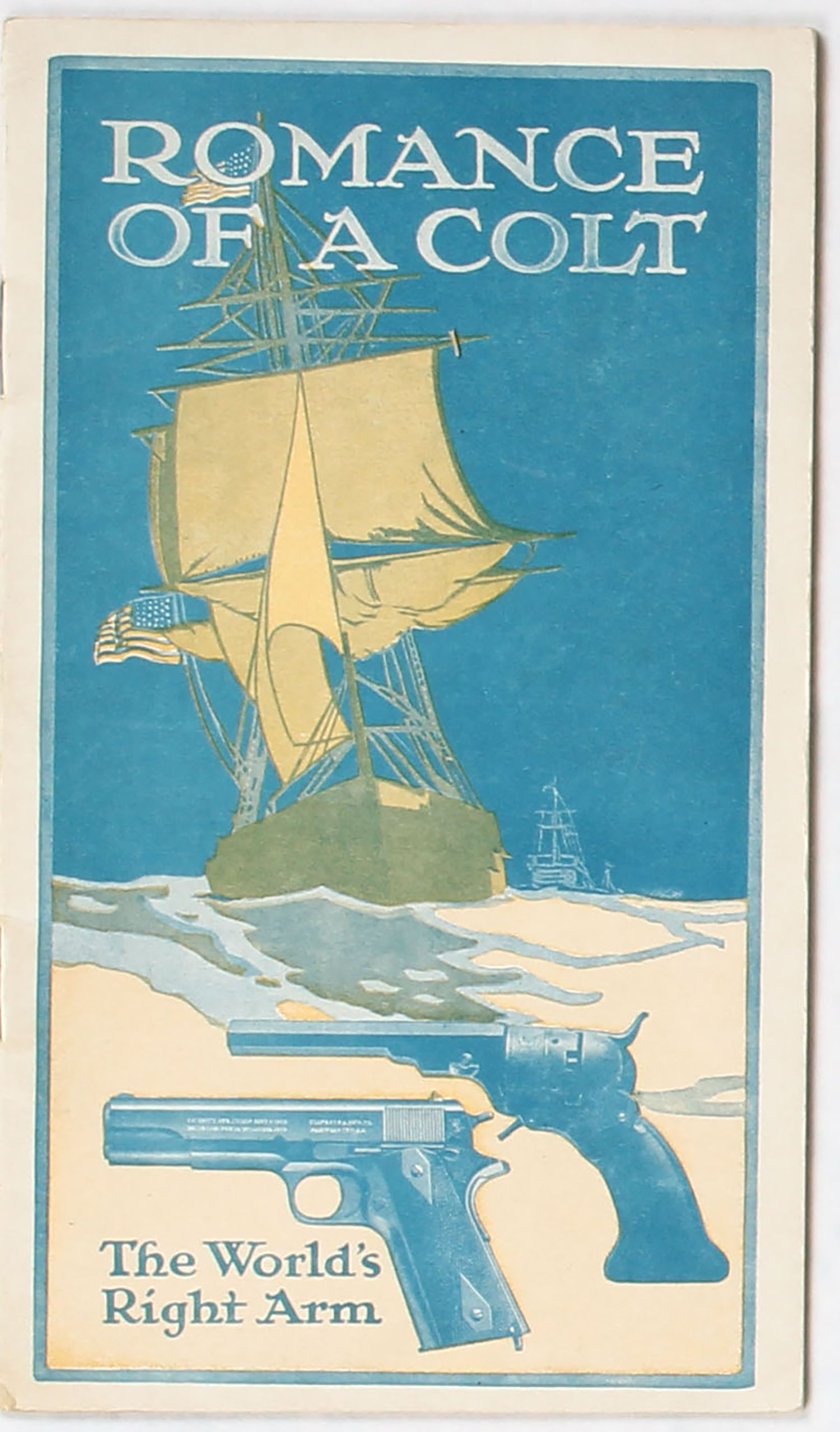 Colt Booklet, Romance of a Colt, 16 pages, 3 3/4'' x 6 1/2'', pictures many firearm. Grade: Excellent - Value: 20 to 80