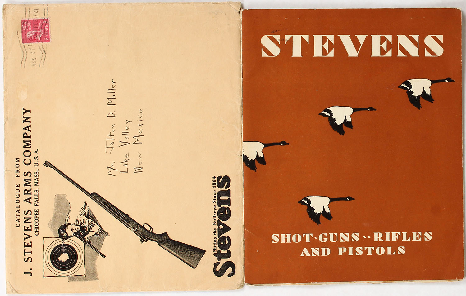 Stevens Rifles, Shotguns and Pistols Catalog, many colored images of guns, 24 pages, 7 3/8'' x 9''. Grade: Excellent + - Value: 20 to 80