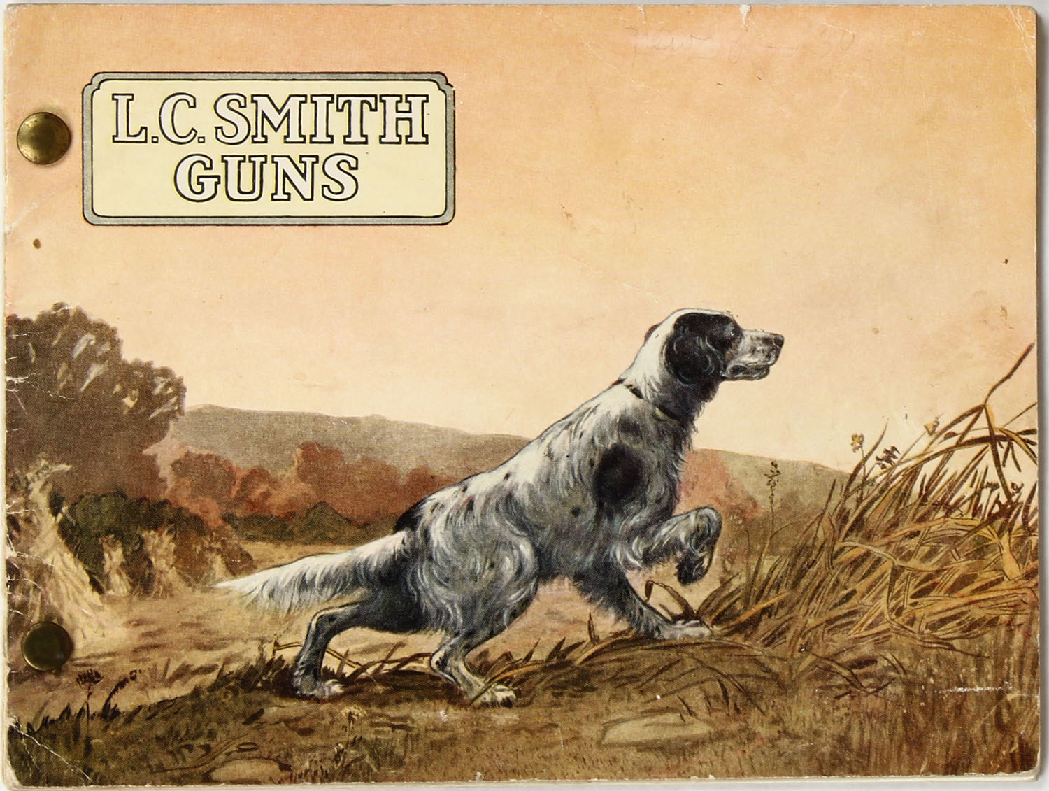 1931? L.C. Smith Guns Catalog, pictures many high end engraved guns in color, has order blank, 24 pages, 8'' x 6'', has two holes at binding with brass holders. Grade: Very Good - Value: 10 to 60