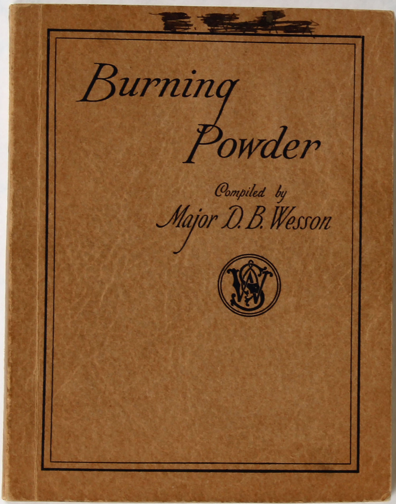 1932 Smith & Wesson , BURNING POWDER by Major D.B. Wesson, many black & white images of target shooting at Camp Perry or the Olympics, teaches you how to shoot a pistol, 121 pages, 4 1/2'' x 6''. Grade: Very Good ++ - Value: 20 to 150