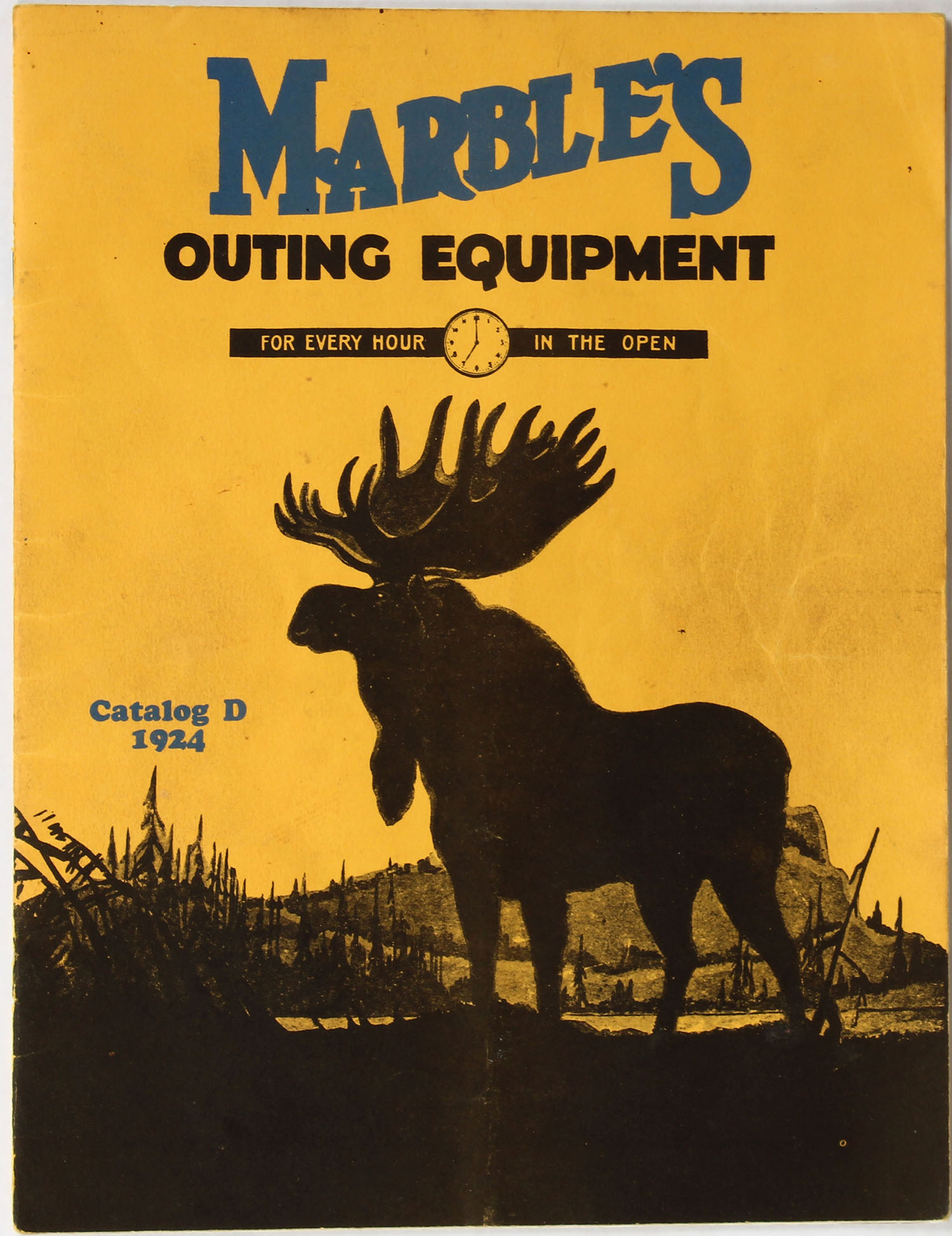 1924 Marble's Outing Equipment Catalog D, large images of axes, Gamegetter, sights & many more, 24 pages, 8 1/2'' x 11''. Grade: Very Good ++ - Value: 6 to 30