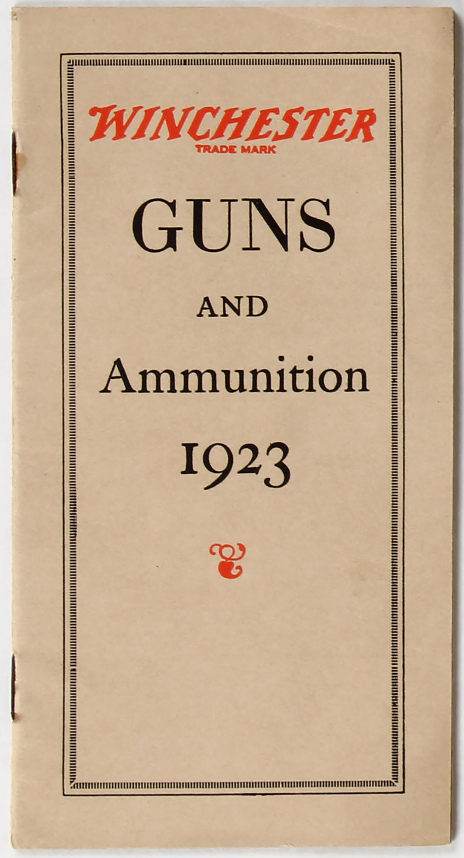 1923 Winchester Guns and Ammunition pocket catalog, pictures guns, ammo window shells, 28 pages, 3 1/8'' x 6''. Grade: Excellent - Value: 6 to 30