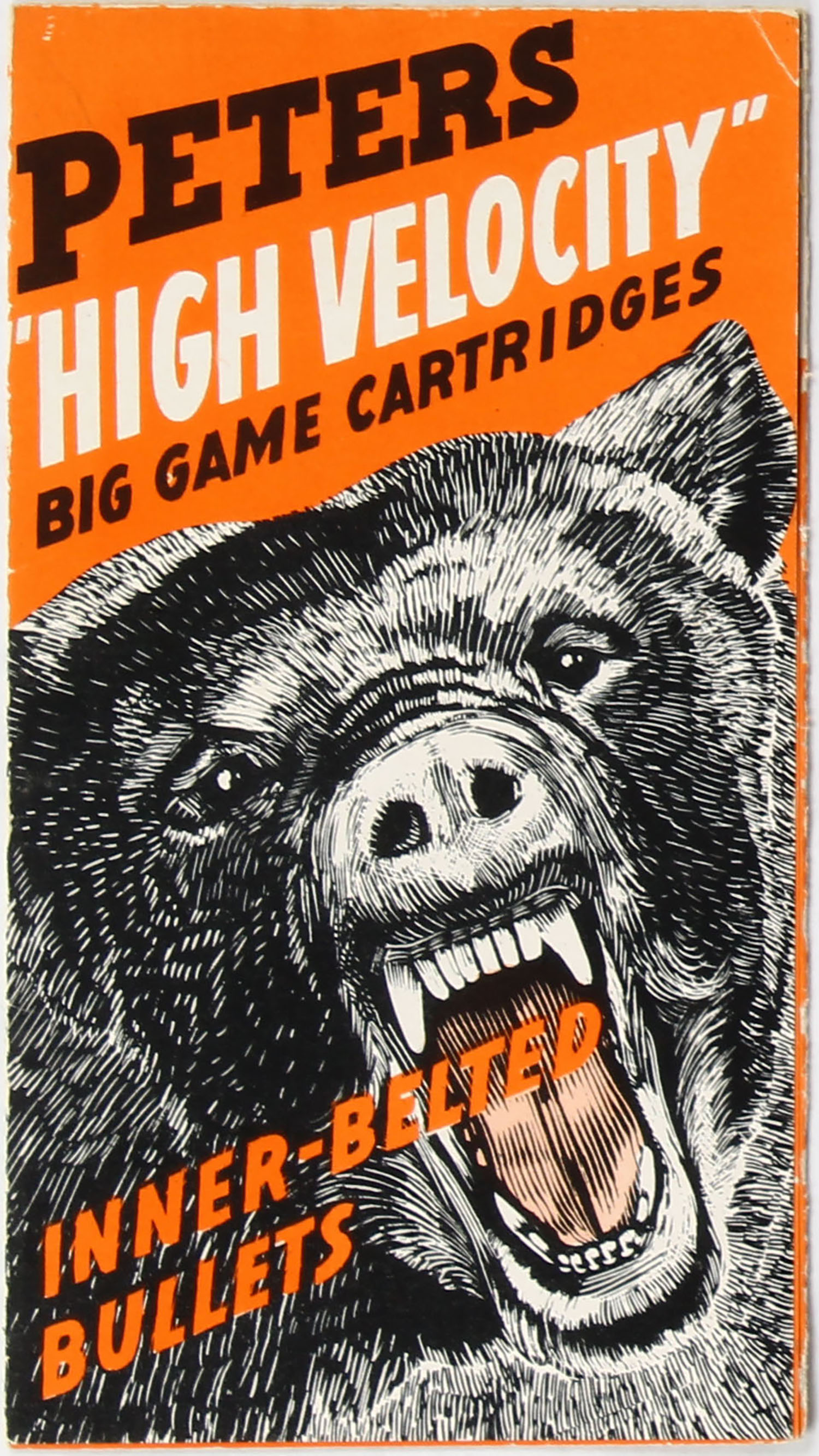 Peters High Velocity Big Game Cartridges brochure, pictures ammo boxes & ammo. Grade: Excellent + - Value: 10 to 40