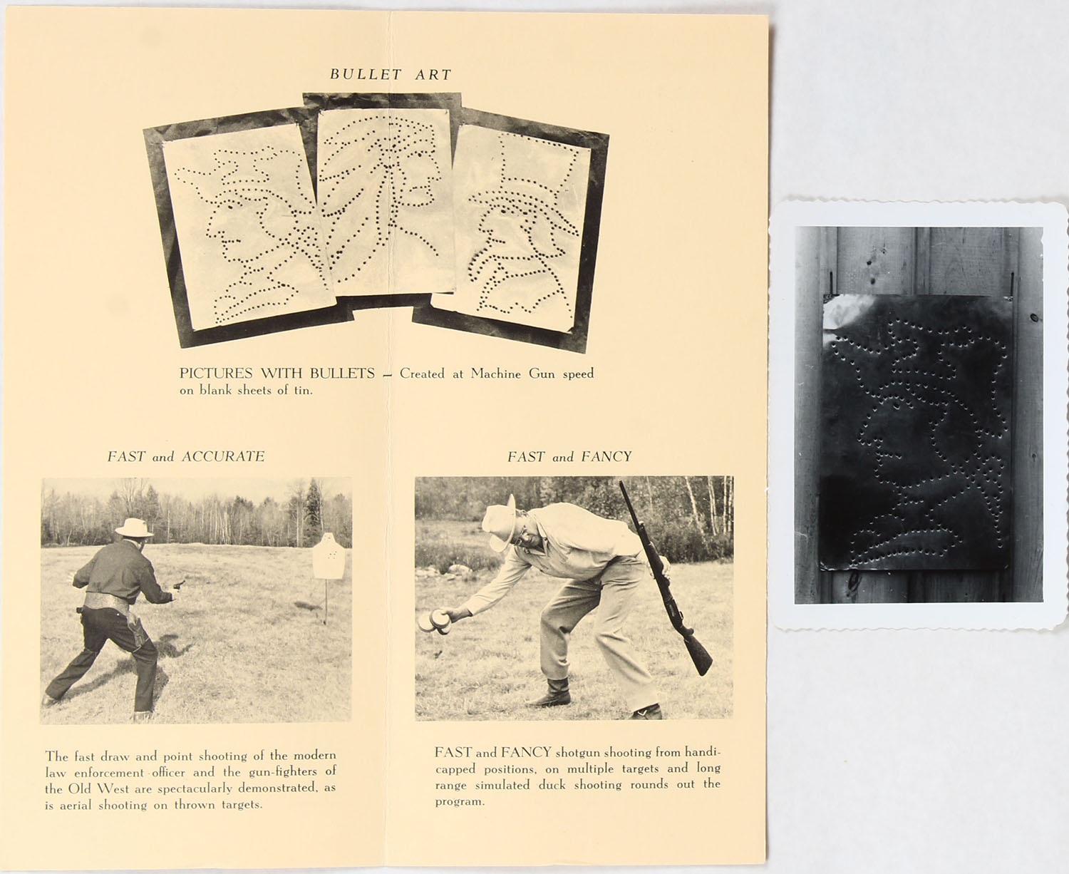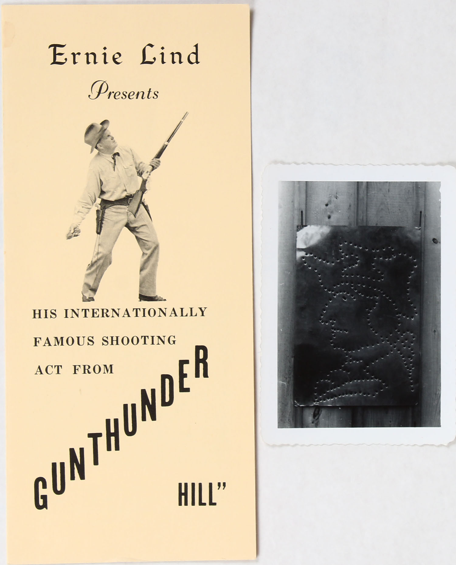 Ernie Lind Brochure with black & white photo of some of his work, he shot for Winchester & Western plus Buffalo Bill Wild West Shows, he would shoot tin metal & make an image of an Indian, or Bill Cody. Grade: Excellent ++ - Value: 10 to 60