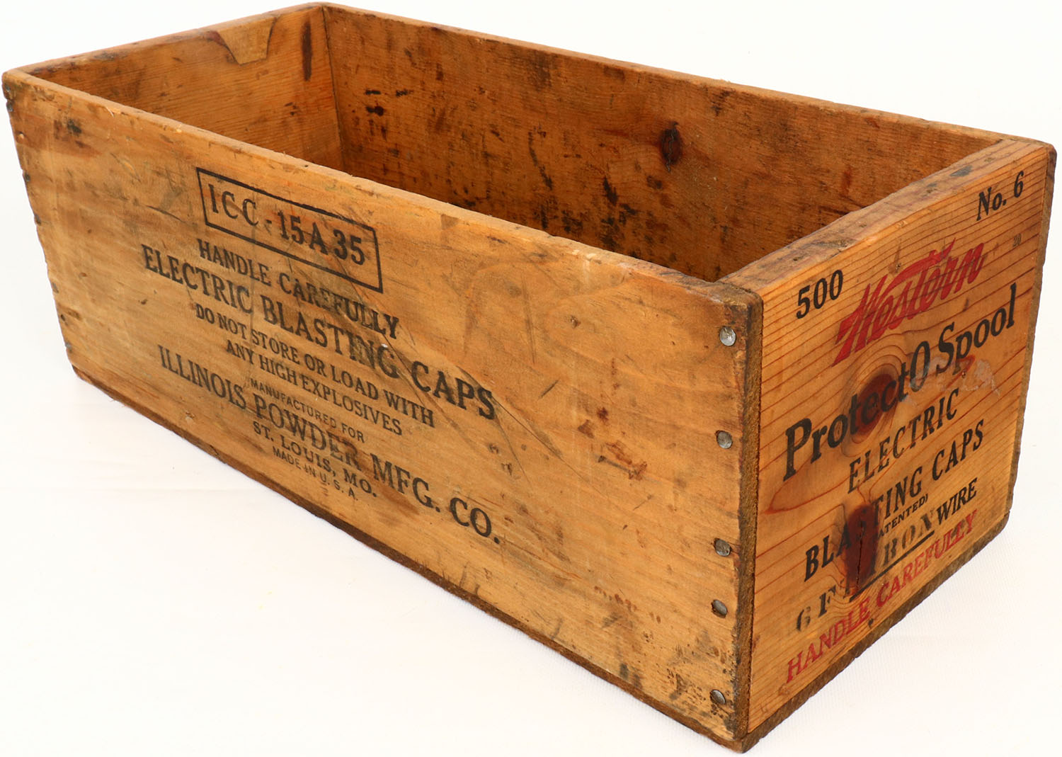 Western Protect0 Spool, No. 6., nail construction wood shipping crate, black & red print is solid, the crate is solid. Grade: Excellent - Value: 6 to 50