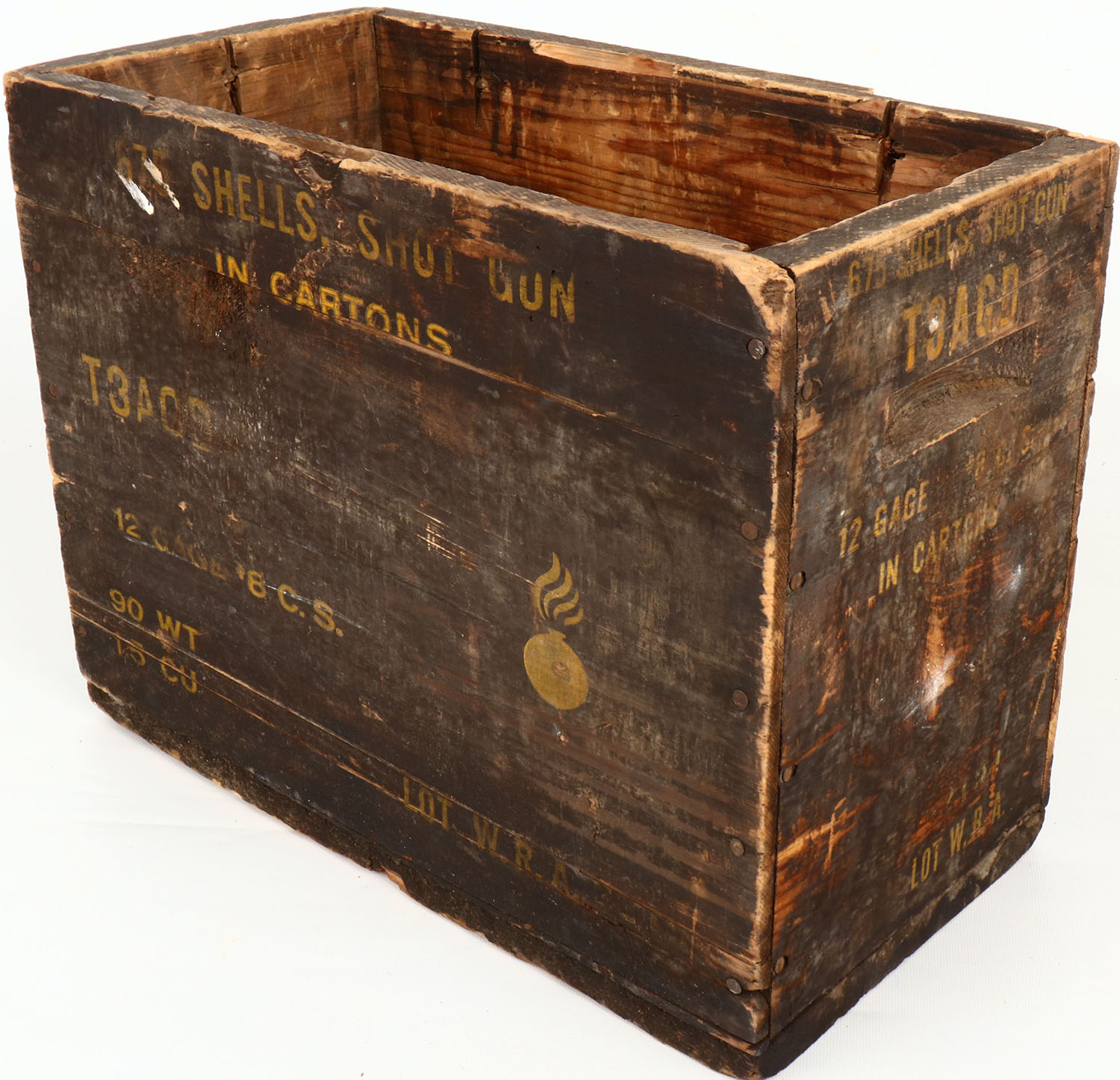Very Large Military, nail construction wood shipping crate, print is faded, crate has age soiling. Grade: Very Good - Value: 2 to 40