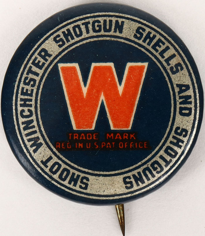 Winchester Pinback, ''Shoot Winchester Shotgun Shells and Shotguns'', 1'' diameter (normally 7/8''), Whitehead & Hoag paperback, pin and paperback are bright and clean . Grade: Excellent - Value: 16 to 50
