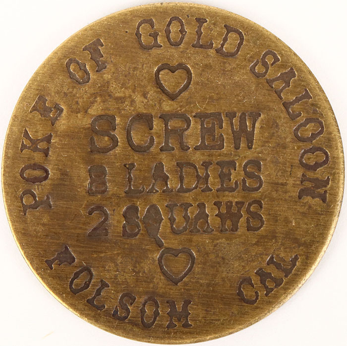 Double sided brothel token, 1 1/2'' Grade: Excellent - Value: 10 to 60