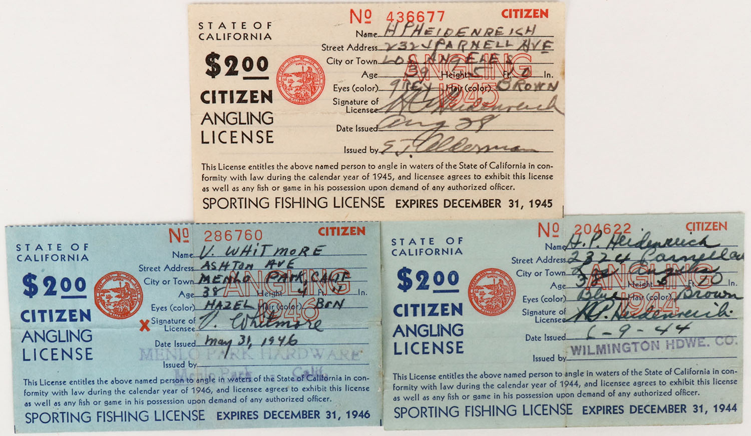 Lot of 3 California Fishing License. Grade: Excellent - Value: 2 to 50