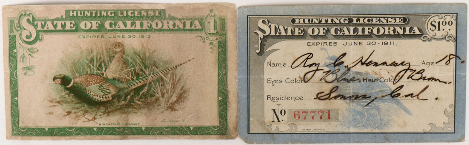 Lot of 2 RARE and EARLY California Hunting License, 1911/1913. Grade: Excellent - Value: 20 to 80