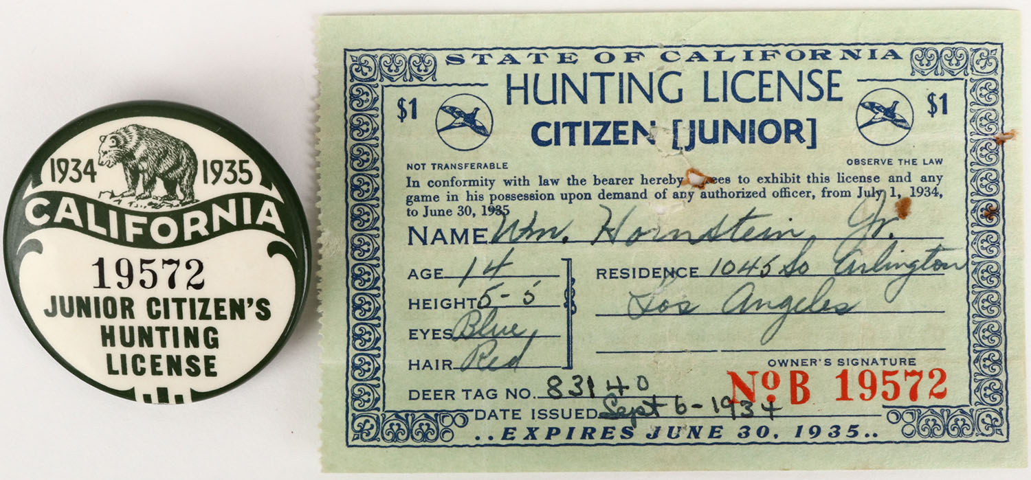 Lot of 2 EARLY California Hunting License, 1935. Grade: Excellent - Value: 20 to 80